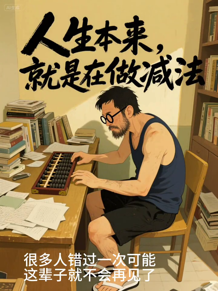 人生是在做减法,所以请珍惜当下。这个世界我们只来一次,我们总觉得来日方长,什么事情都还有机会。百年之后,没有你,也没有我,却忘了这人生是在做减法。很多人错过一次可能就再也没有机会了。我们执着一生,带不走一砖一瓦。很多远方错过一次就可能再也去不成了,带不走一丝爱恨情仇,这辈子就不会再见了。