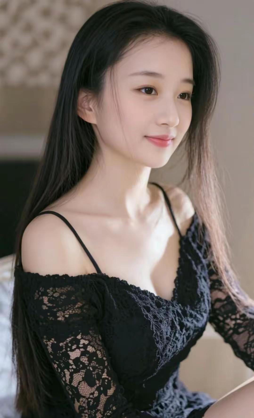 优雅黑蕾丝连衣裙,甜美微笑,气质动人