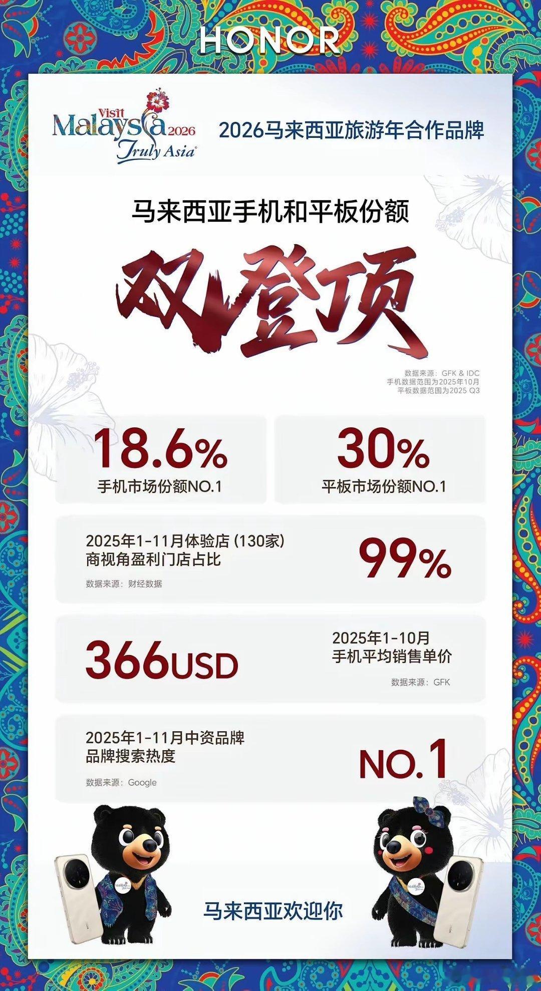 荣耀出海成绩不错呀!中东非洲2025年手机发货量突破1000万台,在马来西亚手机和平板份额双登顶。
