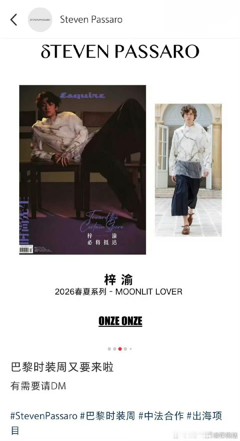 梓渝获2026巴黎时装周邀请 梓渝是最快包揽“五大男刊金九银十双封面”的00后艺人,也是首位首登五大即拿下金九、首登一线男刊拿下银十的00后艺人🔮短短数月杂志总销售额高达1.86亿,时尚成绩瞩目,期待时装周