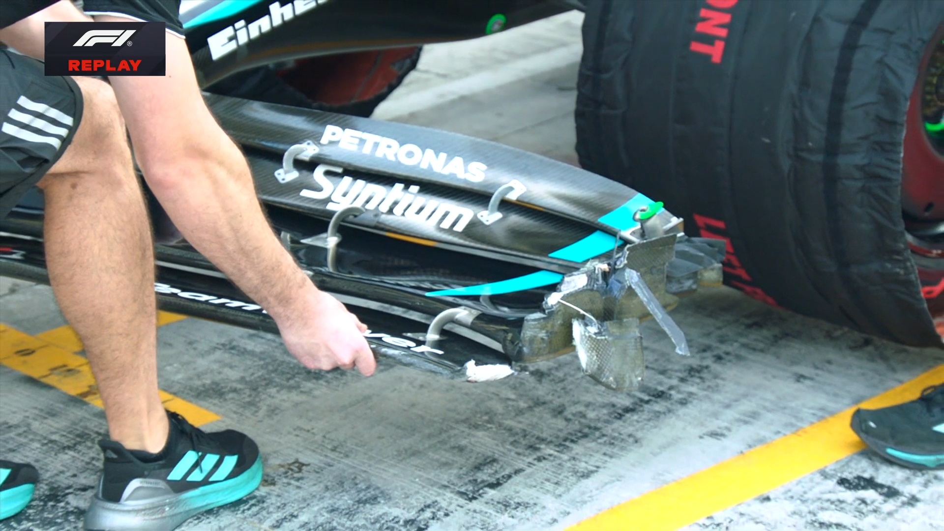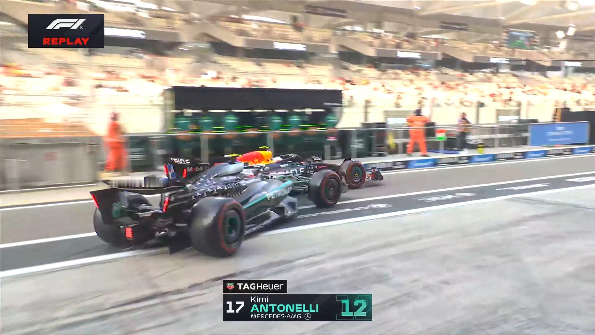 梅赛德斯车队在非安全的情况指示安东内利驶出车库,安东内利与正在维修区快车道中行驶的角田裕毅发生碰撞。角田的底板和安东内利的前翼端板均有受损。F12025F1阿布扎比大奖赛
