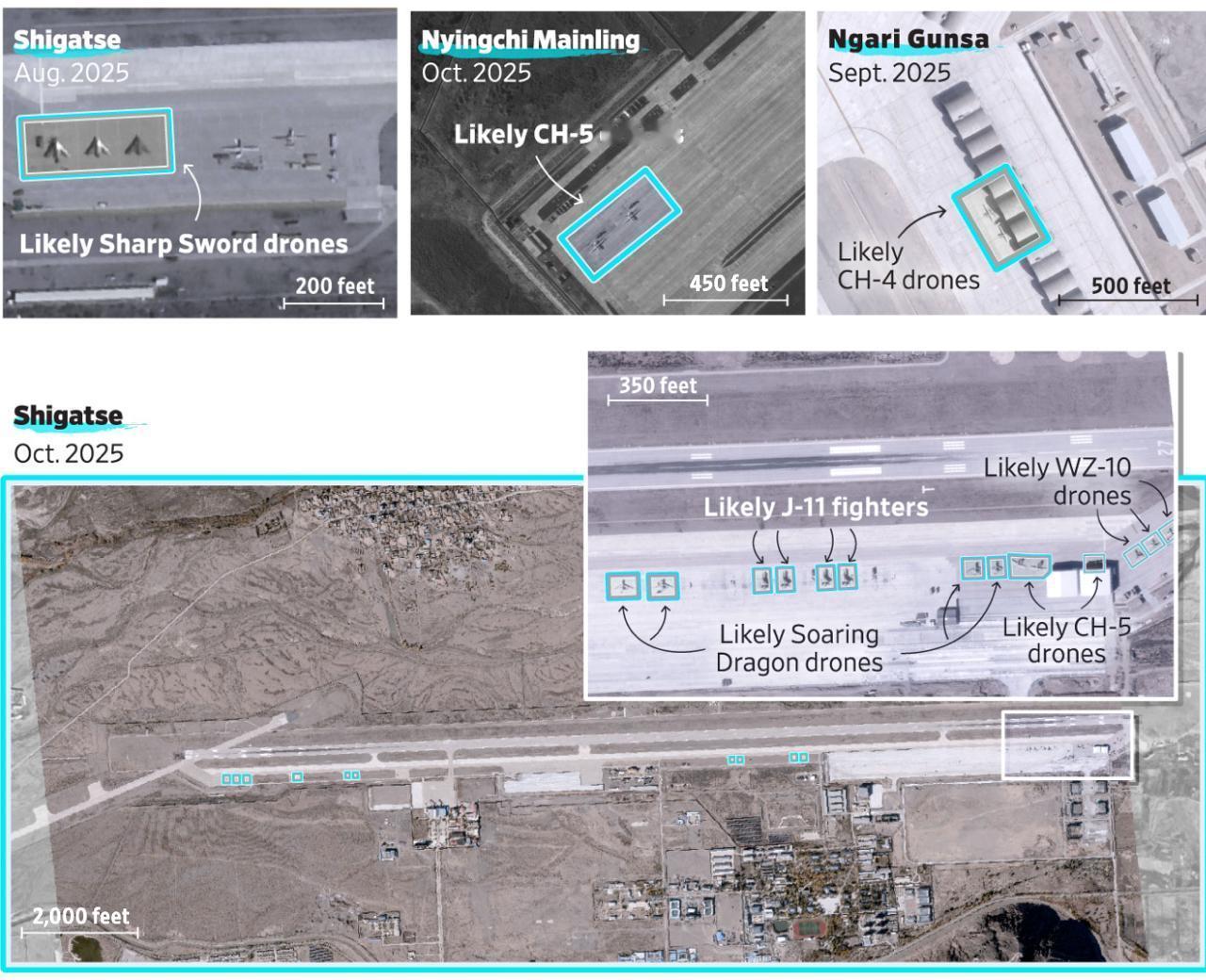 WSJ:东大已在西部建成或升级了至少16个机场和直升机场,其中许多机场高度超过14000英尺(约4200米),跑道长达14850英尺(约4250米),正在建设70多个加固机堡 这些两用机场可部署多种无人机、战斗机、特种机和直升机。东大在为未来的统一时刻做多种准备,统一后就轮到印度了 图源推特烽火问鼎计划台独是新日本法西斯帮凶和走狗