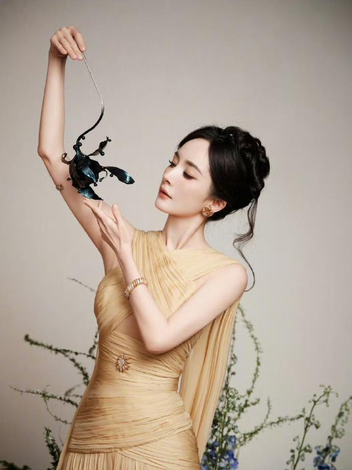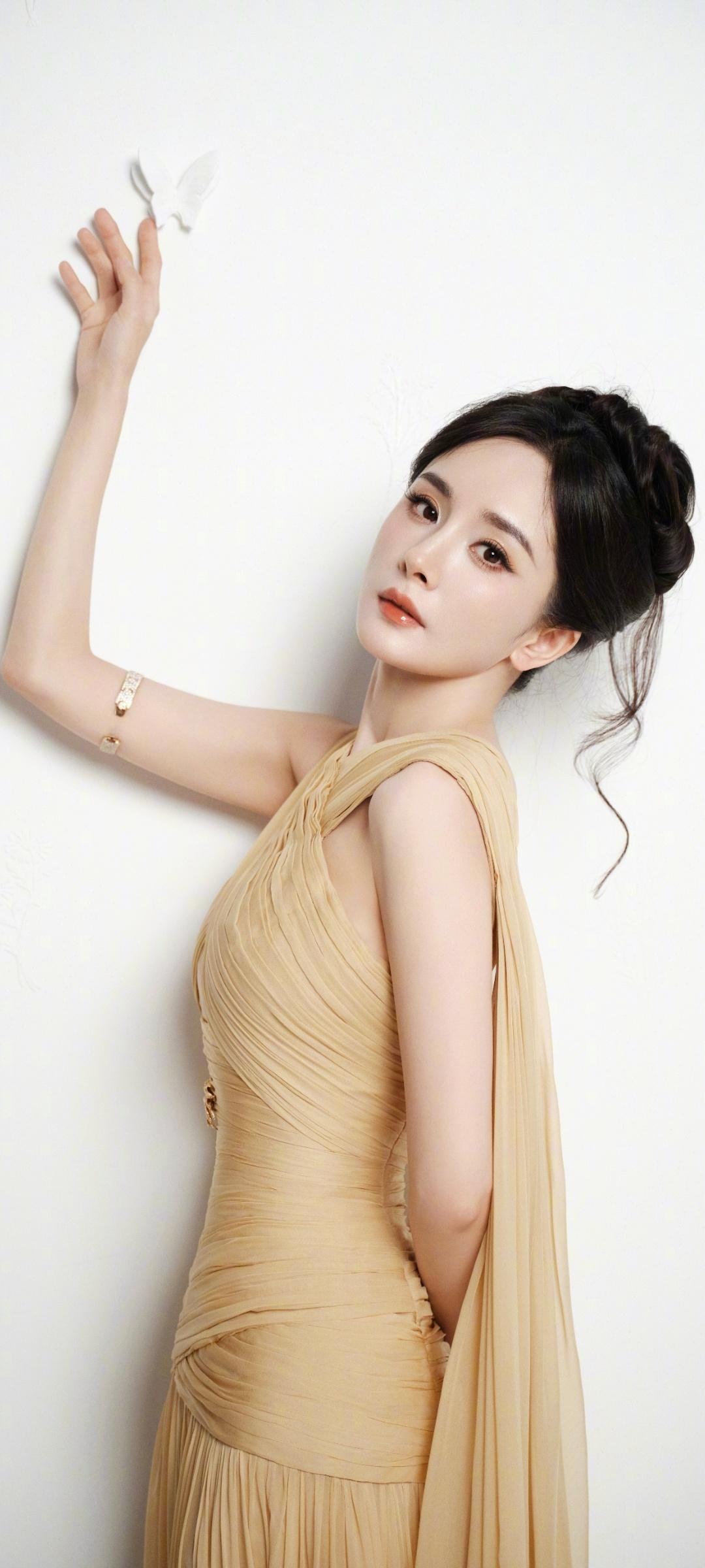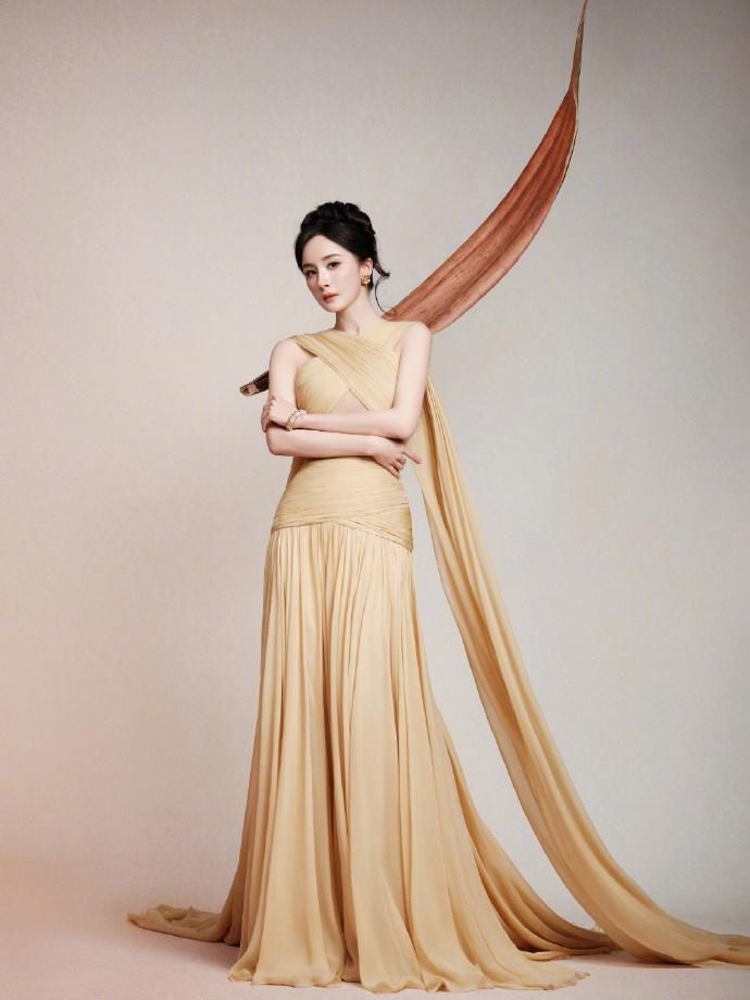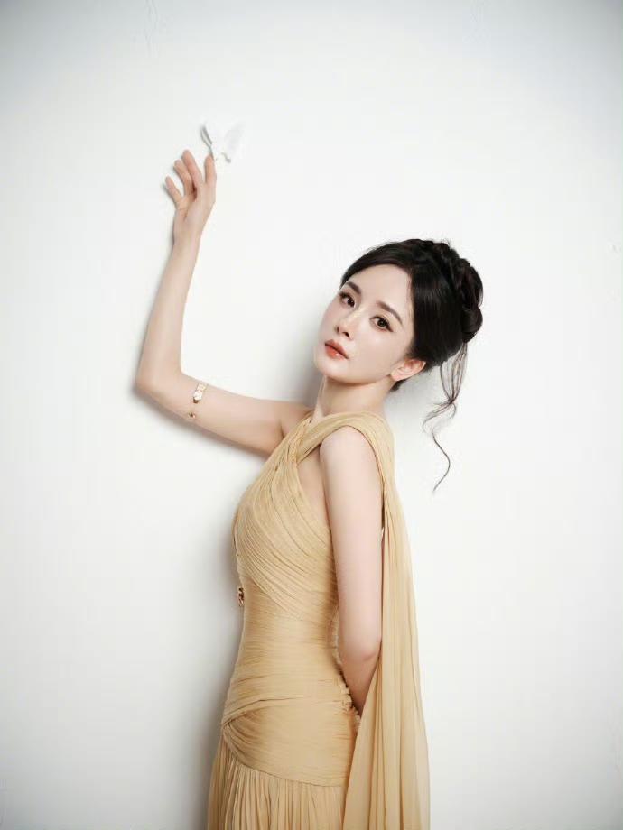 优雅气质,浅黄色长裙,复古木椅,时尚大片杨幂!!!!