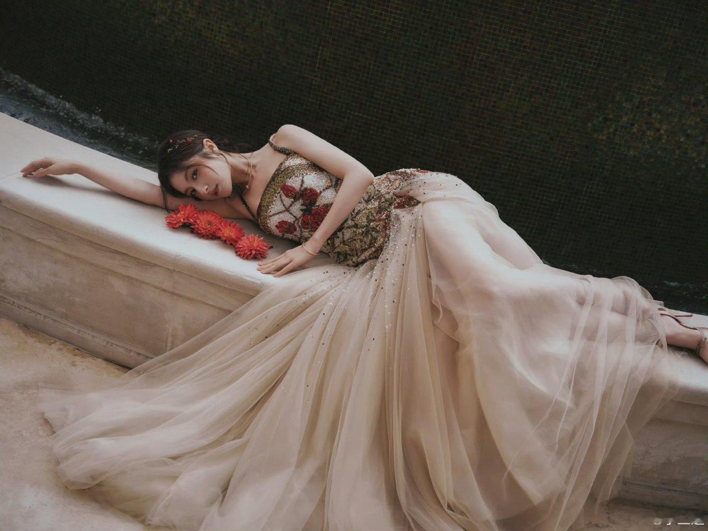 选择李兰迪作为我的毒药和解药 玫瑰长裙,复古盘发,李兰迪美得像一场不愿醒来的梦。她是让人沉醉的毒药,也是治愈一切的解药
