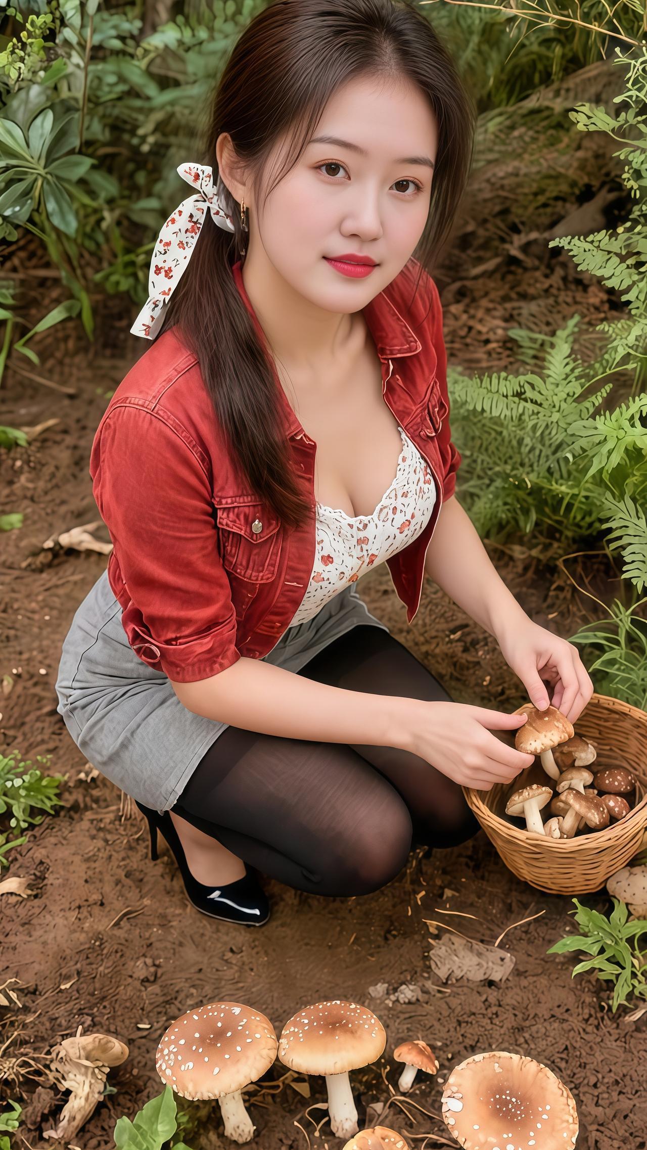 我的乡村生活 山里姑娘 采蘑菇 户外风景