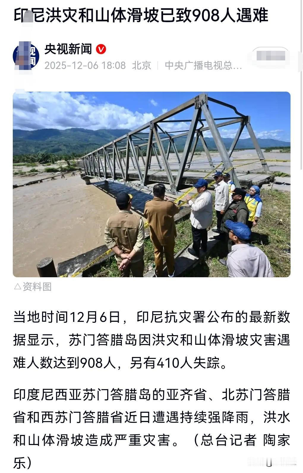 这真的是太让人震惊了。 想不到印尼发生的洪灾和山体滑坡事故,已致908人遇难,另有410人失踪。 想必也是凶多吉少了。 想不到天灾竟然如此可怕,造成这么多的死亡。 想想也是让人感慨万千。 活着的时候一定要好好的活,尽量不留遗憾。