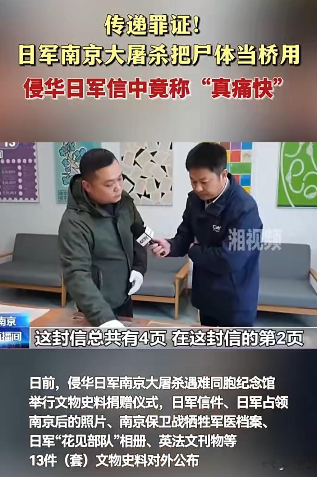 当年的日本鬼子真是太恶毒了。 12月6日在网上看到这么个消息。 日军南京大屠杀把尸体当桥用,这真的是太触目惊心了,已经无法用任何词语来形容日军的残暴了。 有侵华日军杀了这么多中国人竟称真痛快。 这真是心理扭曲到了极点。