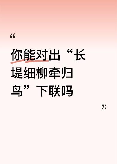 【拆解赏析】 这副对联以“长堤细柳牵归鸟”开篇,画面温柔而富有诗意。长堤上的柳树细长柔软,像是在牵引着归巢的鸟儿,暗示着一种归属感和温暖的情感。柳树在中国文化中象征柔情与依恋,牵动着归途的鸟儿,似乎在诉说着对故乡、对过去的眷恋。 而下联“青石小巷藏旧梦”则延续了这种怀旧与细腻的意境。青石铺就的小巷,古朴而静谧,仿佛时间在这里缓缓流淌,藏匿着人们的旧梦和回忆。青石代表着岁月的沉淀,小巷则是记忆的载体,藏着无数的故事与情感。这里的“旧梦”不仅是对过去的追忆,更是一种对美好时光的珍惜与怀念。 整副对联通过自然景物与人文情怀的结合,展现出一种对过去的眷恋和对未来的希望。它让人联想到那些在时光长河中静静流淌的记忆,提醒我们在现代快节奏的生活中,也不要忘记心底那份温暖与柔软。它激发人们去回忆、去珍惜那些简单而纯粹的幸福时光,也让人反思在追逐未来的同时,是否还能守住内心的那份宁静与美好。 这副对联不仅仅是对景的描绘,更是一种情感的寄托。它引导我们用心去感受生活中的细节,找到属于自己的“长堤细柳”和“青石小巷”,在繁忙中寻得片刻的宁静与温馨。如此意境,令人心生共鸣,也激励我们在纷繁复杂的世界中,保持一份纯粹的美好与善良。
