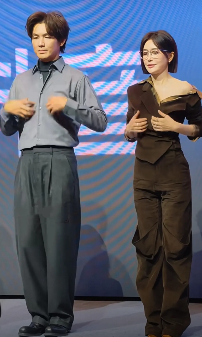 明显俩人都有点憔悴,造型师给搭配的衣服也是一言难尽