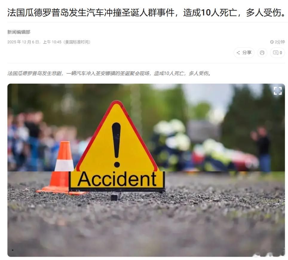 海外新鲜事 在法国瓜德罗普岛圣安妮镇,一辆汽车冲入正在准备圣诞节庆祝活动的人群,造成10人死亡,19人受伤。回去就是闹心事儿!