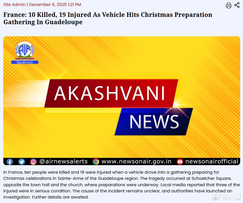海外新鲜事在法国瓜德罗普岛圣安妮镇,一辆汽车冲入正在准备圣诞节庆祝活动的人群,