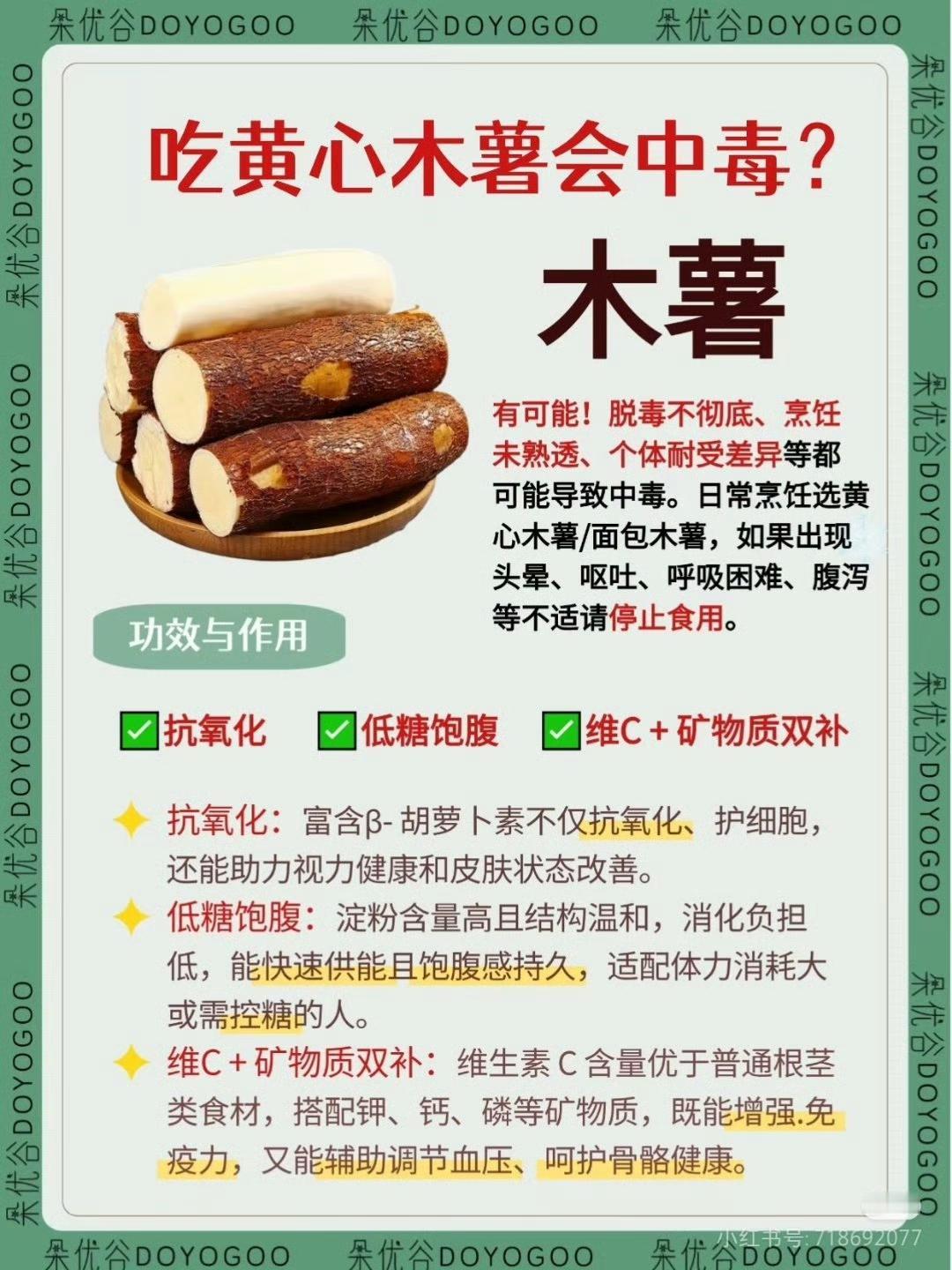 木薯糖水中毒:核心原因、症状与急救指南 木薯糖水中毒的核心诱因是木薯未彻底去毒,其含有的氰苷类物质(如亚麻苦苷)在体内分解为剧毒的氰氢酸,阻断细胞呼吸导致中毒,严重时可致命。 一、核心原因(3个关键误区) 1. 木薯品种:苦木薯氰苷含量是甜木薯的10-20倍,直接煮制饮用风险极高; 2. 处理不当:未去皮、未浸泡(需清水泡24-48小时,中途换水); 3. 烹饪不足:煮制时间过短(需大火煮30分钟以上,且开盖煮,让氰化物挥发)。 二、中毒症状(发作时间:食用后数分钟至数小时) - 轻度:恶心、呕吐、腹痛、头晕、乏力、口苦; - 重度:呼吸困难、胸闷、抽搐、意识模糊、血压下降,严重者可在短时间内呼吸衰竭死亡。 三、急救措施(黄金原则:立即停止食用+快速就医) 1. 催吐:中毒早期(未昏迷),用手指刺激咽喉部催吐,减少毒素吸收; 2. 就医:催吐后立即拨打120,告知医生“食用木薯糖水”,便于针对性解毒(特效解毒剂为亚硝酸盐类药物); 3. 禁忌:切勿自行服用药物或喝牛奶、浓茶,避免加重身体负担。 四、安全食用木薯糖水的3个关键步骤 1. 选对品种:优先选用甜木薯,避免使用苦木薯; 2. 彻底处理:去皮后切成小块,清水浸泡24小时以上,中途更换2-3次水; 3. 充分烹饪:冷水下锅,开盖大火煮30分钟以上,确保煮透煮烂。