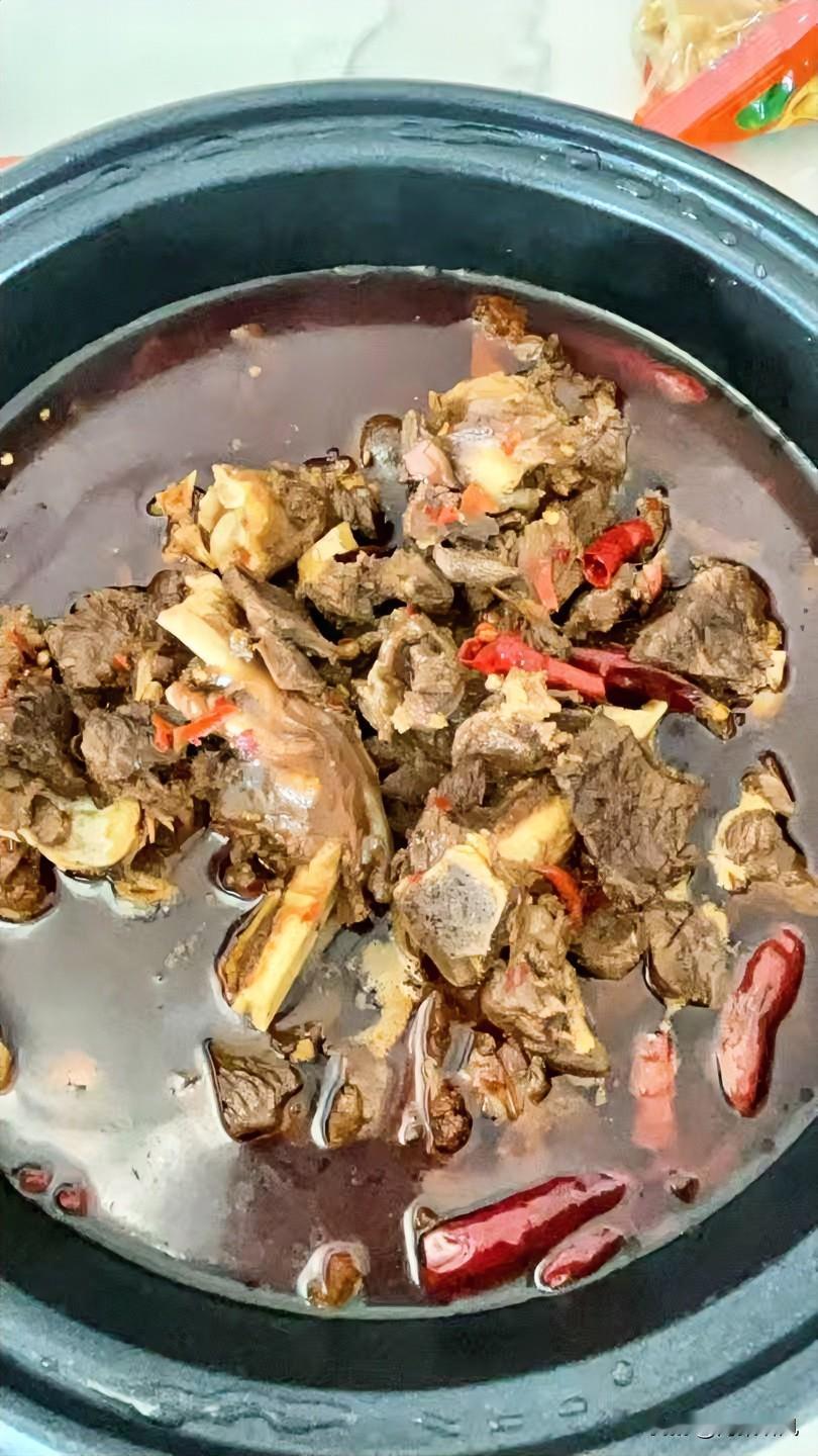 今天搁家彻底躺平,本来寻思点外卖对付一口,结果我家那位卷起来了——钻厨房鼓捣俩小时,端出这么一锅红烧牛骨! 满锅酱红油亮,块块带骨带筋,干辣椒飘着贼香,一掀盖给我香迷糊了。 啃一口肉嫩得脱骨,酱香裹着辣劲儿直钻牙缝,连汤泡饭都能炫两碗!这大菜整得,感觉周末直接升级成“家庭小馆子”[笑哭] 牛骨炖汤