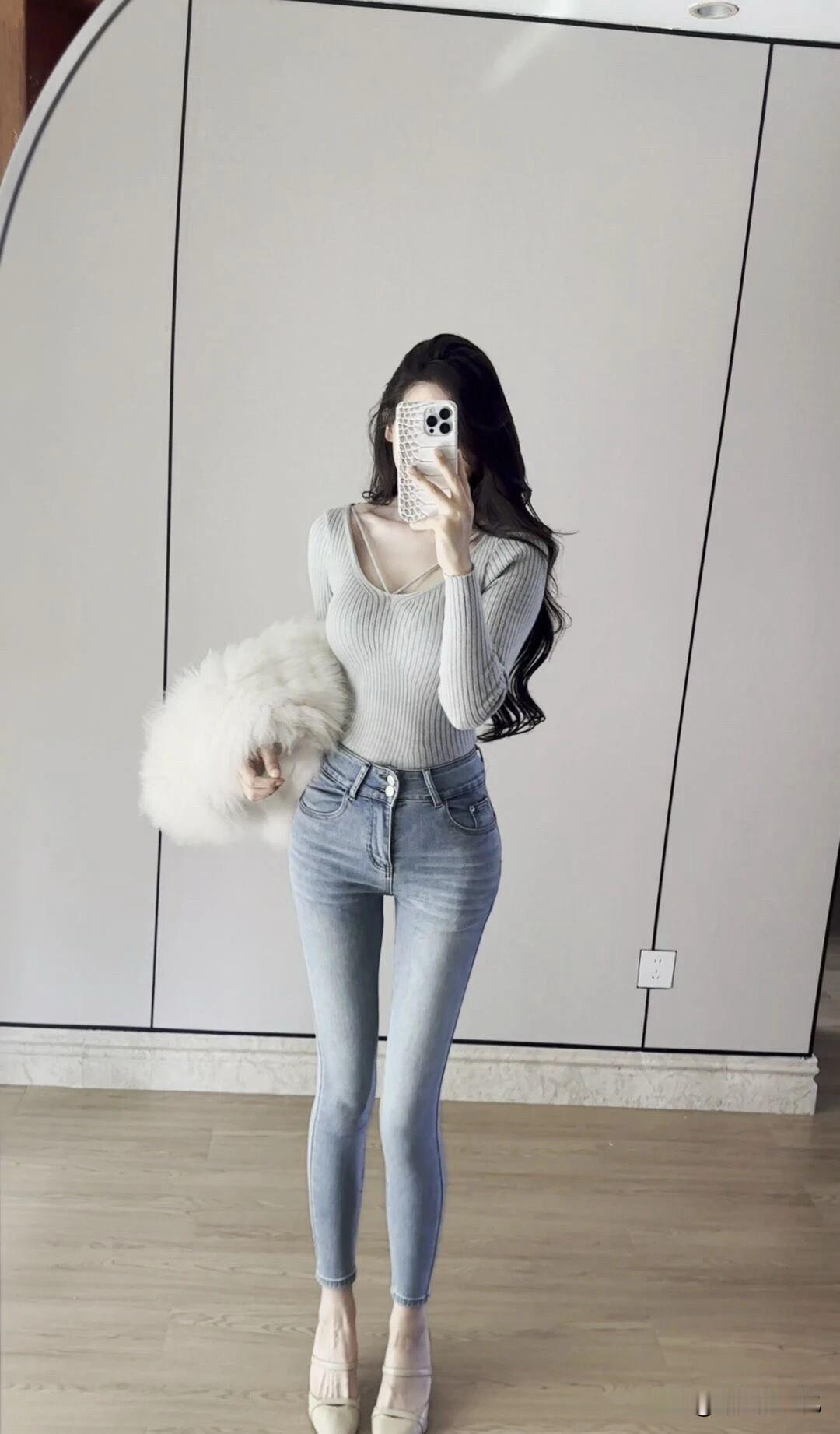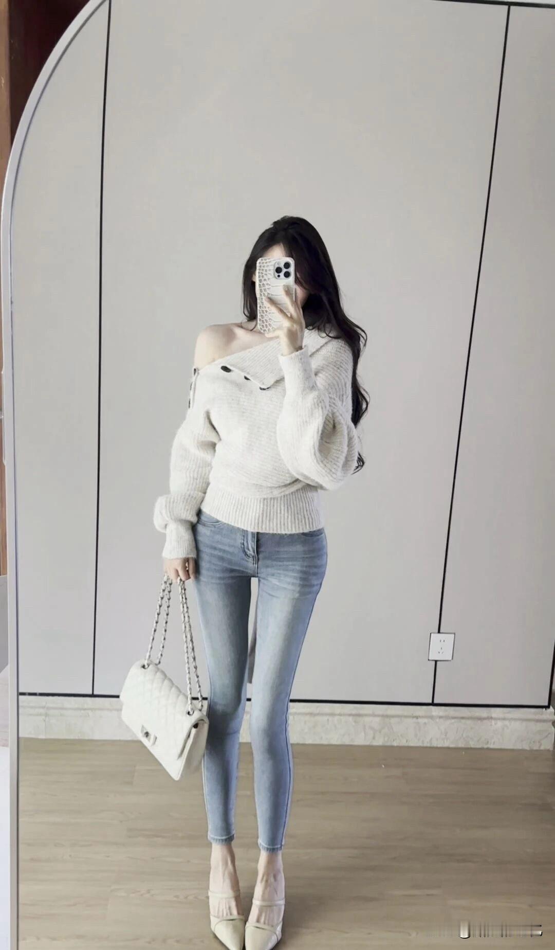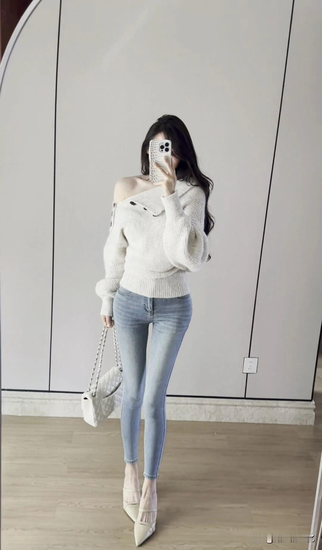 露肩针织+修身牛仔,一穿即瘦,气场立现![比心][比心][比心] 露肩牛仔裙套装 牛仔蕾丝穿搭