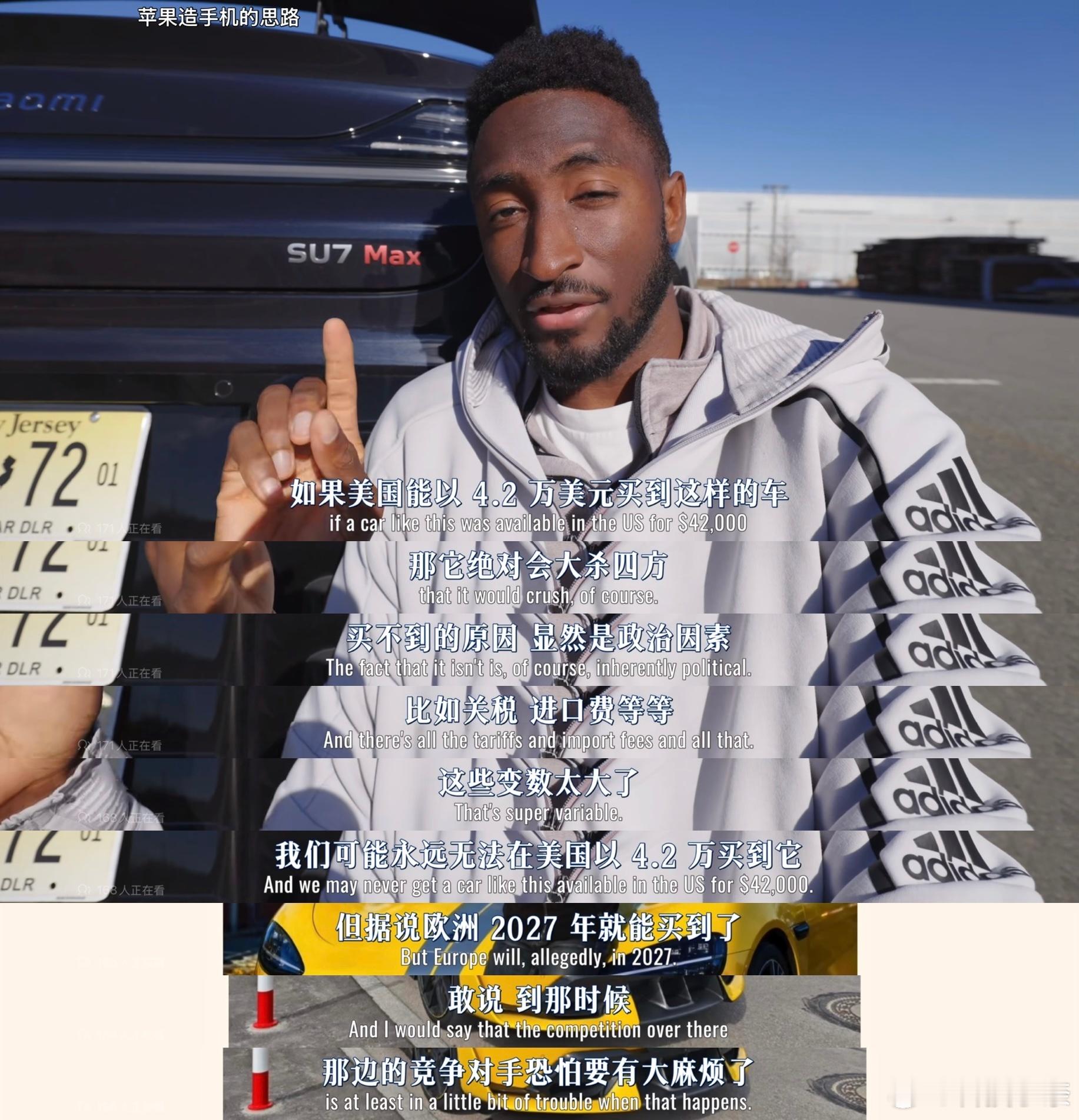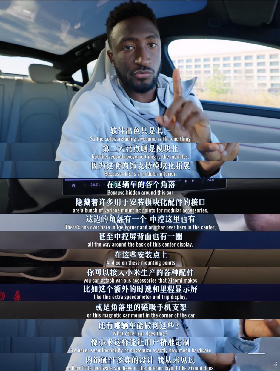 美国数码一哥评价小米SU7 这把真让MKBHD开上小米SU7了,体验完直言“美国汽车是不是凉了”!回想下之前他云评SU7的时候,那可是充满了傲慢与偏见的,结果如今就正是这辆两年前发布的车,给他带去了深深的震撼,这波趁热再让他体验一下新发布的YU7的话,还不得直接惊掉下巴。在视频里MKBHD还直接帮咱们算了一笔账:小米SU7 Max,101度电池、673马力、2.78秒破百,中国卖30万人民币。 美国特斯拉Model 3 Performance,性能接近,卖5.5万美元(约39万人民币),他表示:这价格差距是荒谬的,并且SU7的出现拉高了所有汽车的上限。同时咱们再看看来自于海外机构、媒体、名人的评价,福特CEO:福特CEO自曝把小米SU7等5款中国电车运回美国总部研究,还说个人最爱小米SU7。彭博社:小米立志打造比特斯拉更好的电动汽车——并且成功了。黄仁勋:直接用“奇迹”来形容小米,表示很想买一辆小米汽车,中国的电动汽车可能是最让世界惊讶的存在。宝格丽:宝格丽 CEO 夸它成就堪比苹果。所以说,传奇耐黑王的含金量还在提升,谣言止于智者更止于事实,这搁海外都是盛赞不断,那么国内到底是哪群人在闭眼黑呢!
