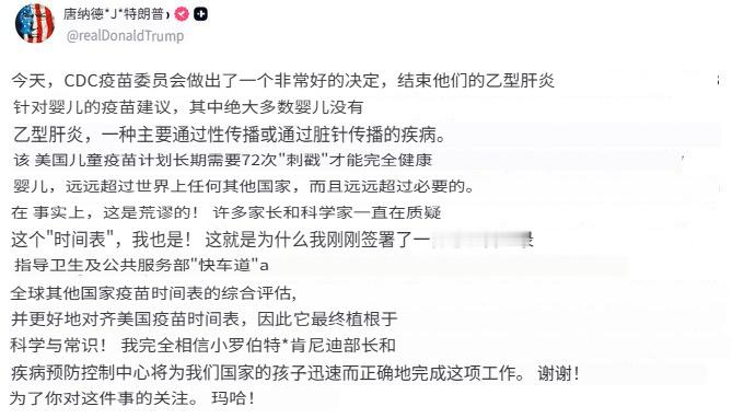 特朗普声明。乙肝疫苗。
