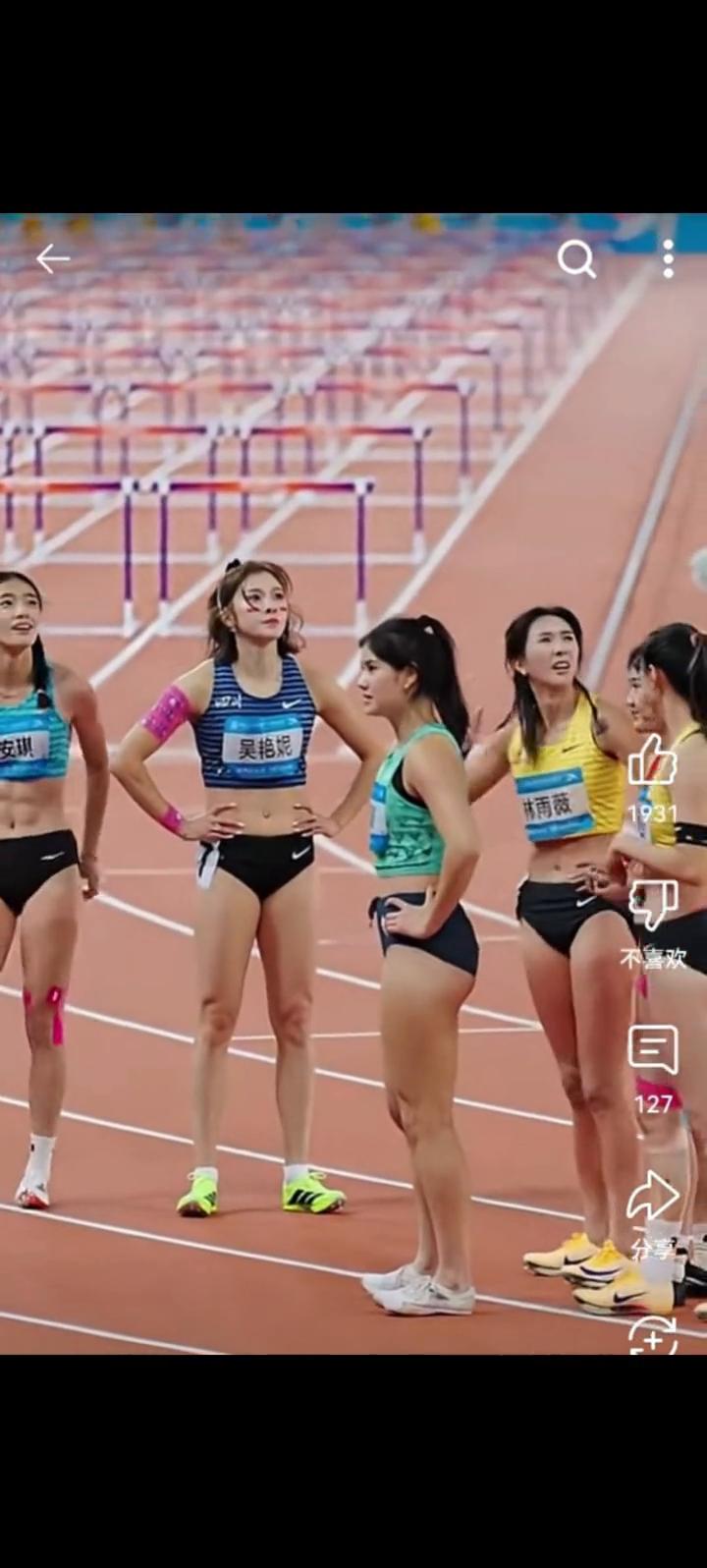 全运会女7100米栏决赛,八美女合影。 既然你能把这个约起来。