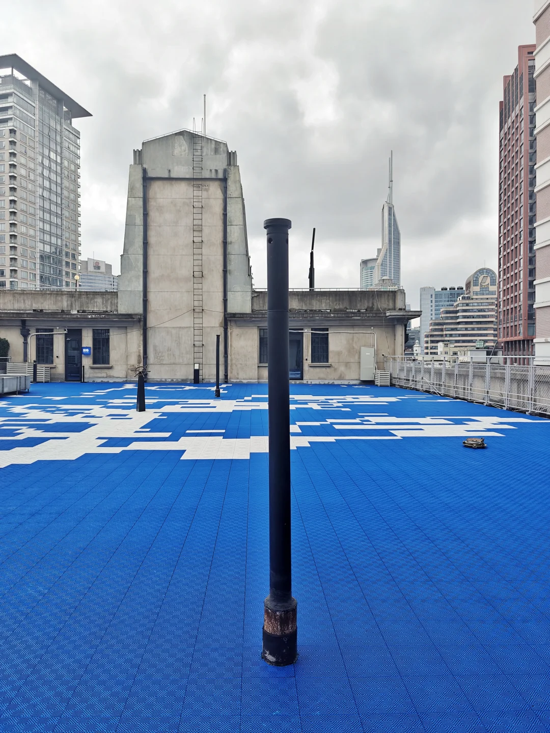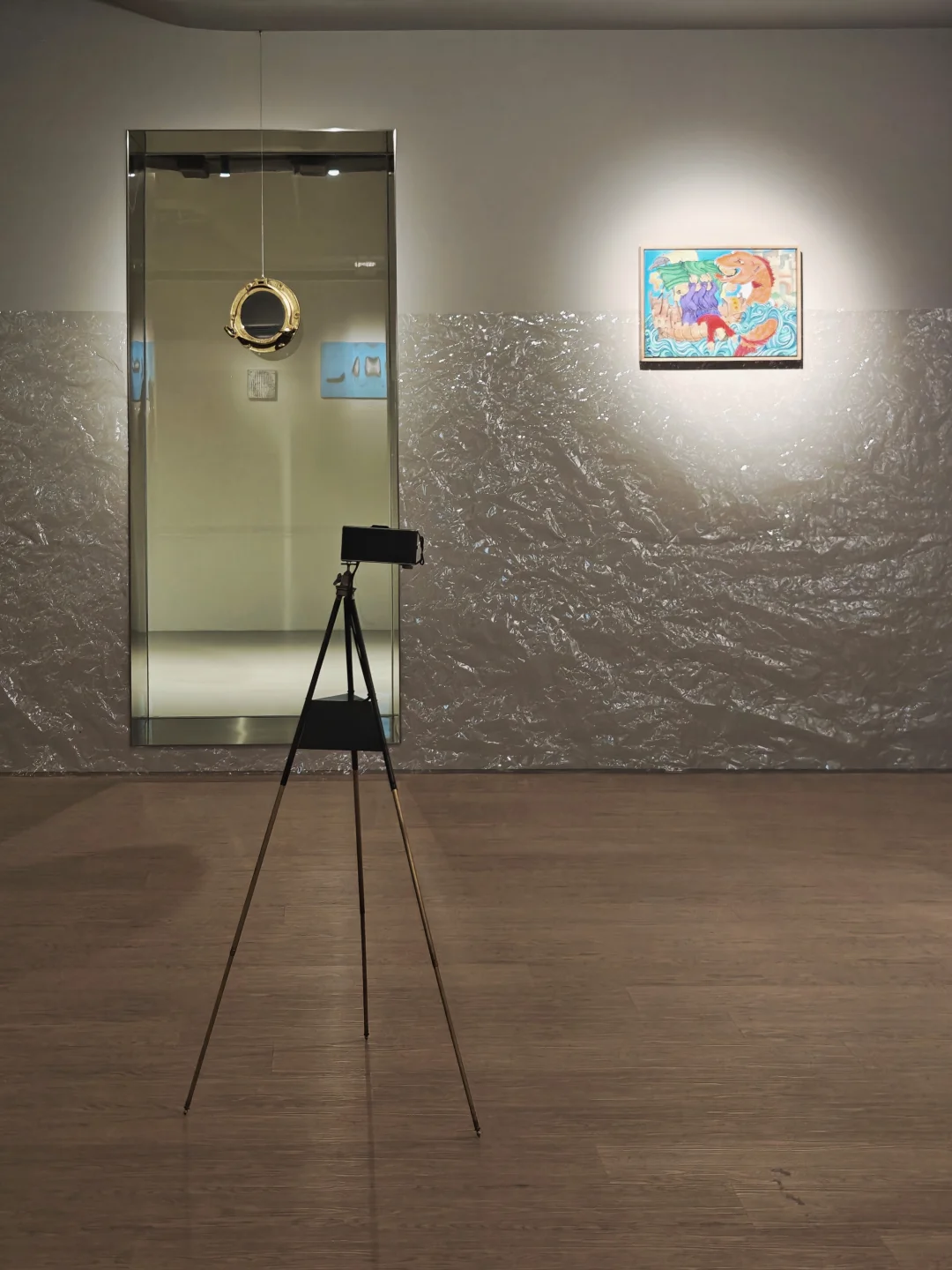 以杰克·伦敦报道日俄战争的历史片段为灵感,通过船舵、灯塔、徽章等元素,构建“苏州河—太平洋”的虚拟航线,隐喻边界空间的历史记忆与未来不确定性(5楼天台)