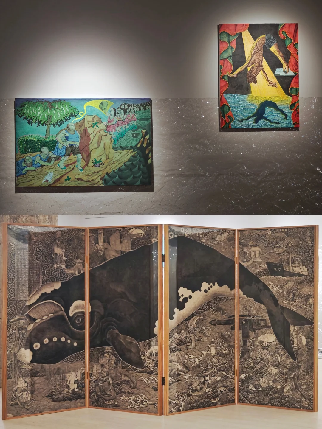 灵感源于大连自然博物馆历史,融入东北民间传说,以巨鲸化神的神话意象,串联捕鲸历史与海洋生态问题,探讨人类技术与自然力量的冲突