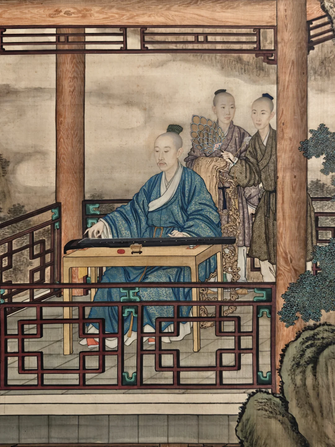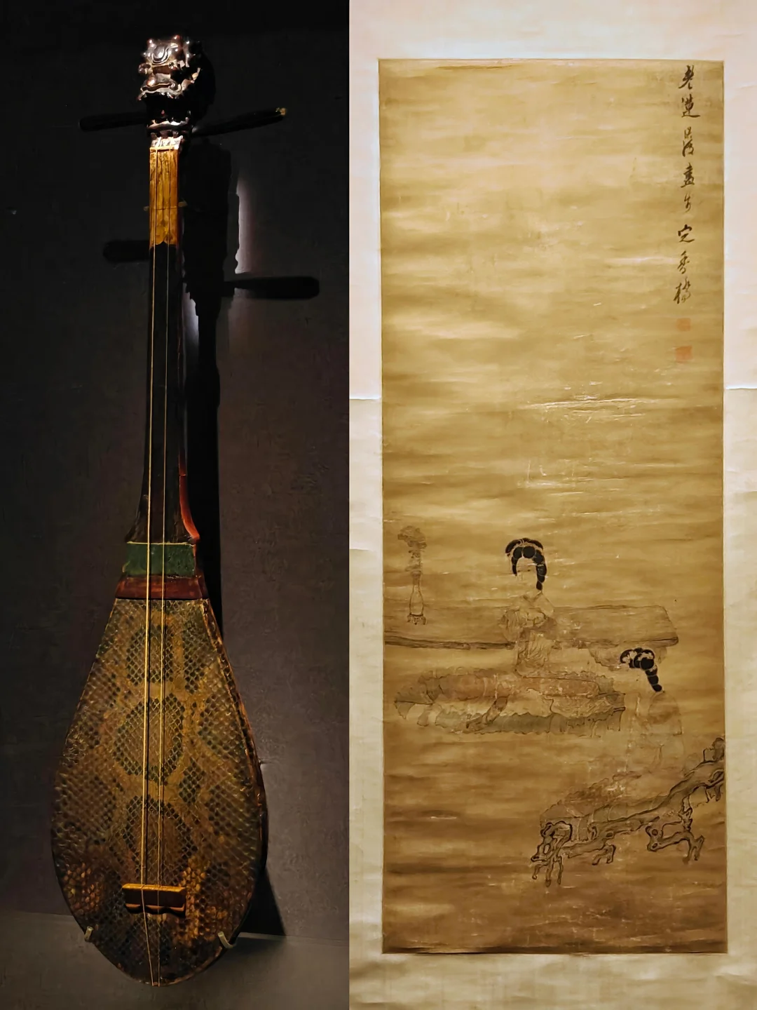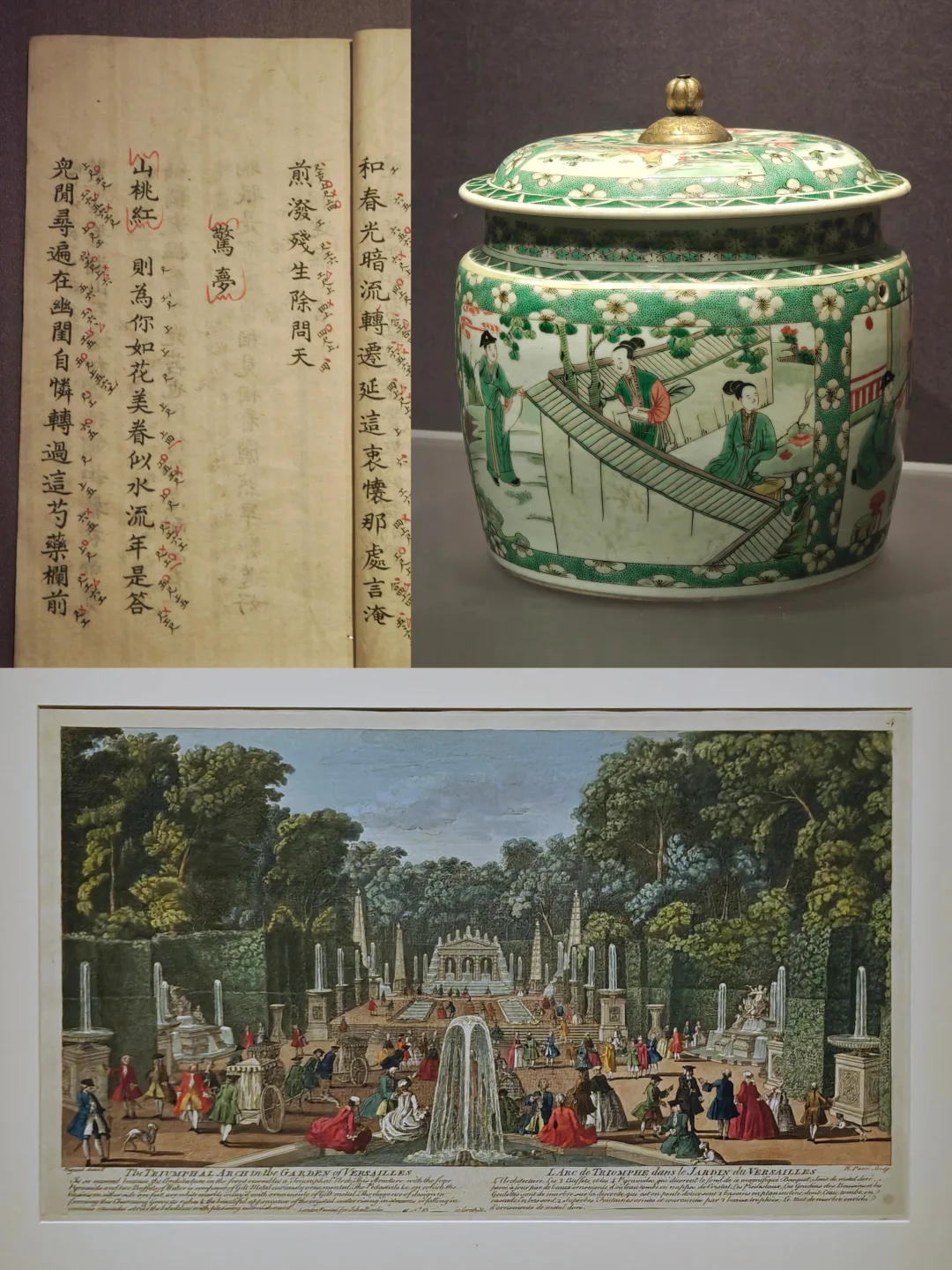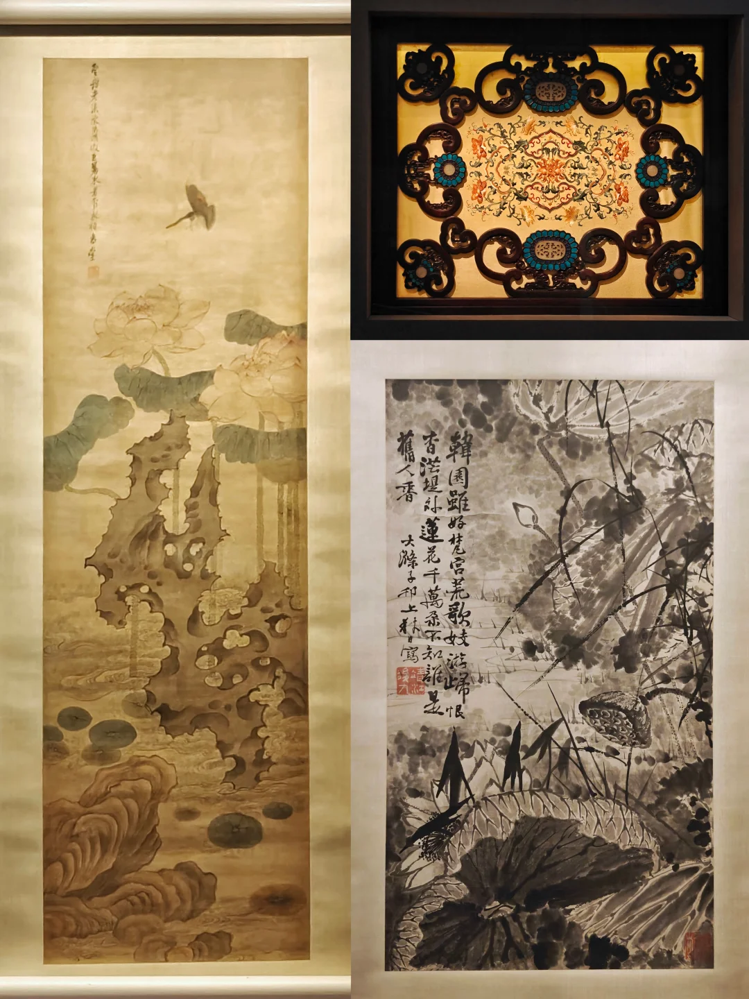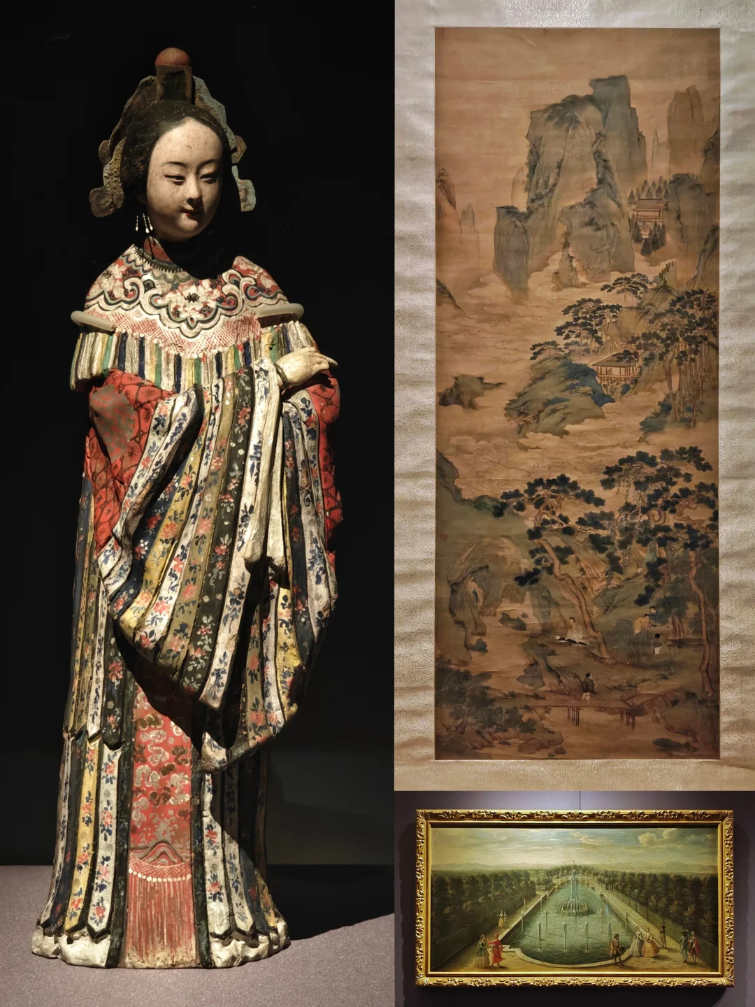 🌺与站在自家花园里的莫奈肖像相对的是《弘历观荷抚琴图轴》,郎世宁与中国画家合作完成,融合中西艺术特征