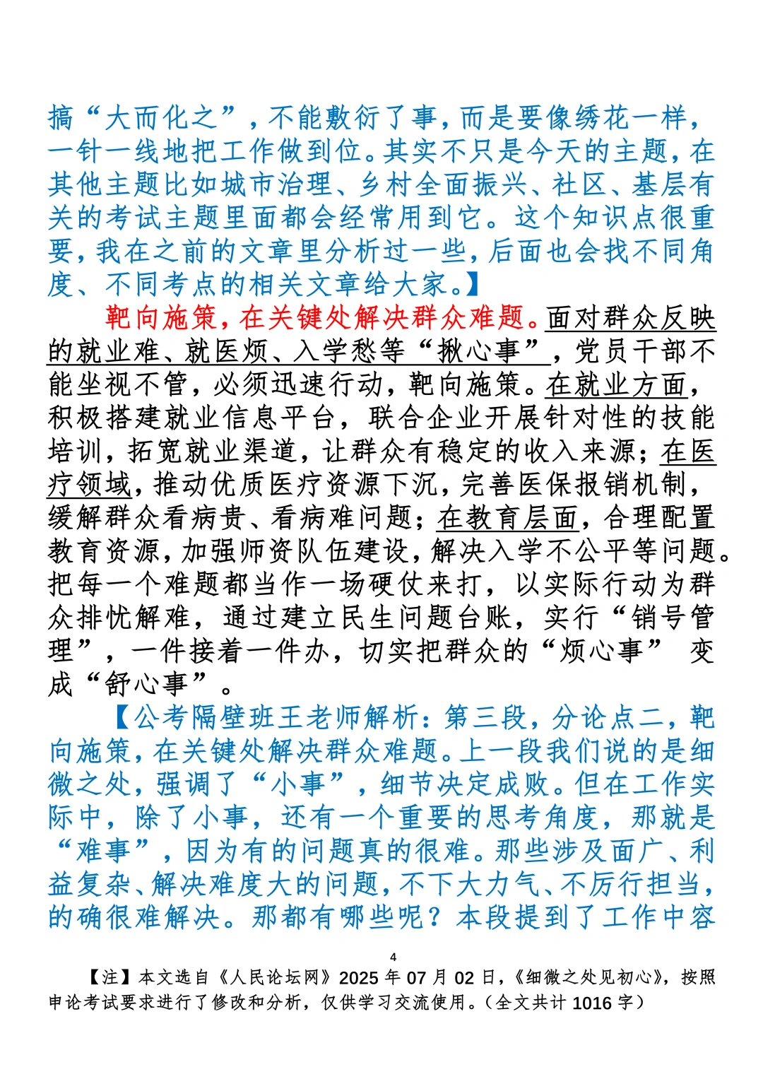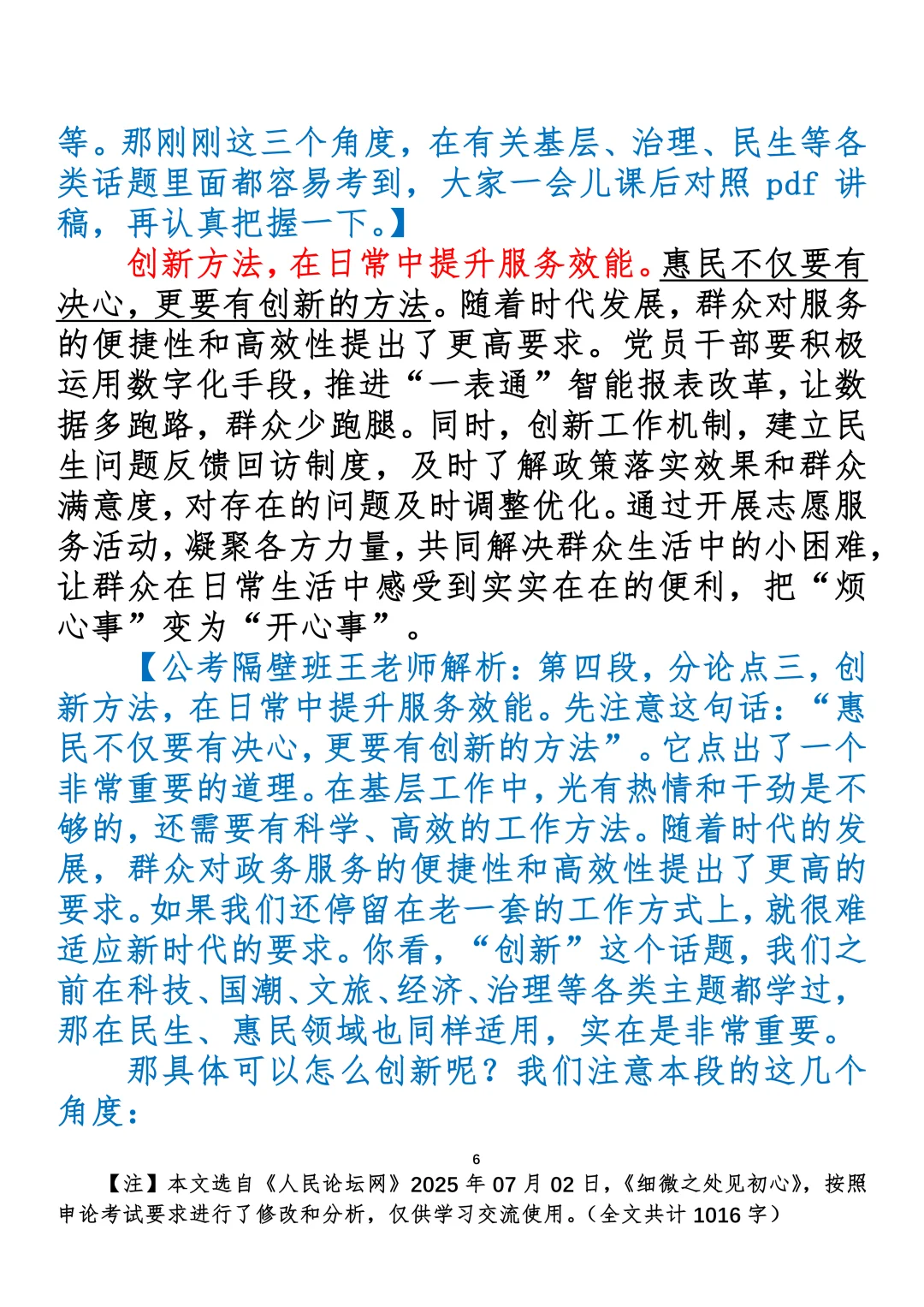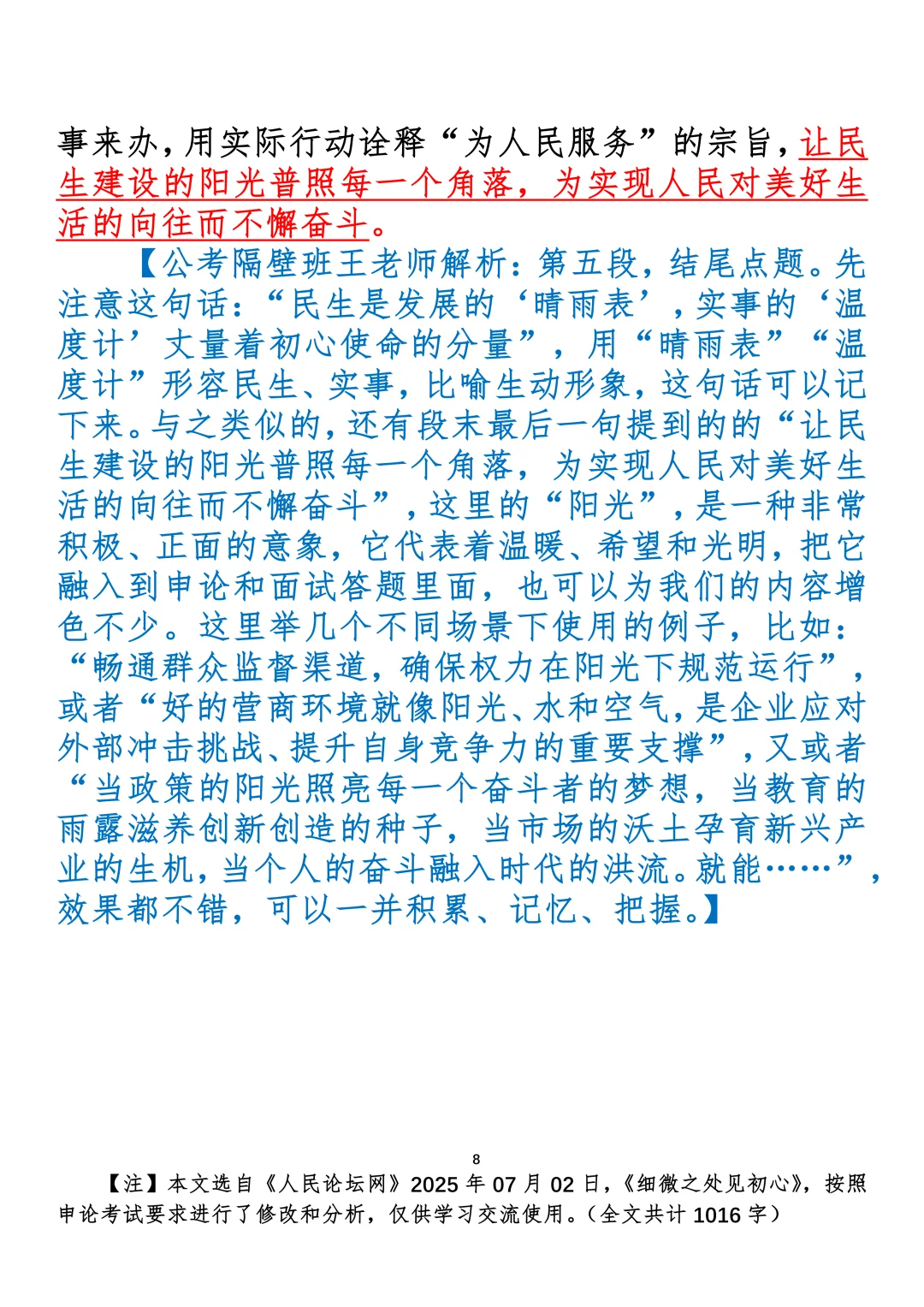如何抄写:每日抄写文章发在“公考隔壁班王老师”账号,红色字是重点句和结构句,黑色字是正文,蓝色字是解析,大家抄写时不必抄蓝色字。建议先通读全文,做到心中有数再开始抄写,效果会更好。 关于文章:抄写文章来源于人民日报,但每篇文章我都根据申论考试要求进行了修改:一是重写或修改开头、结尾;二是统一段首句句式结构;三是调整段落字数,使文章结构更均衡;四是简化复杂长难句,使之更具可模仿性。每篇文章无论修改多少,都是基于申论考试要求,毫无对人民日报文章品评之意。(此处致敬人民日报)