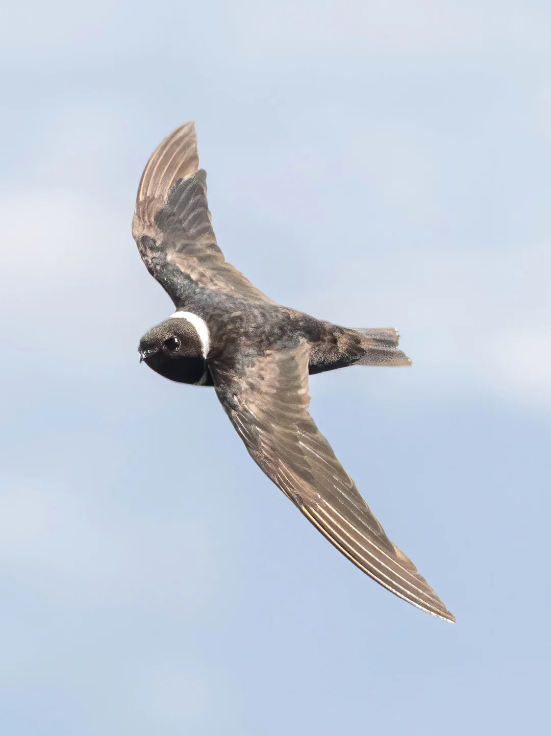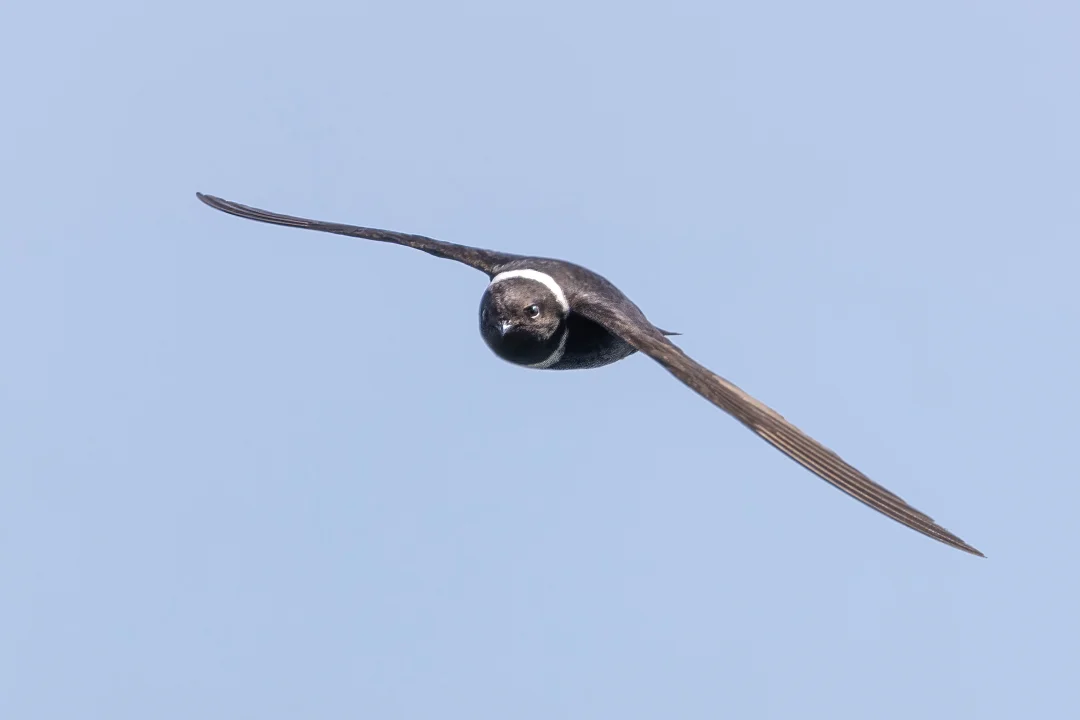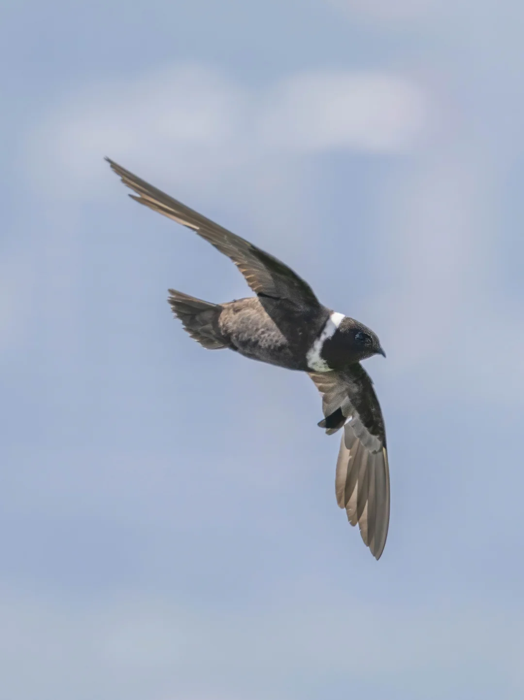 原创拍摄 白领黑雨燕,雨燕目雨燕科白领黑雨燕属。 白领黑雨燕以完整的白色颈圈著称,它们通常以多达200只的大群出现,有时候和其他的雨燕还混群。在里约热内卢基督山顶,能看到很多白领黑雨燕在绕飞。 虽然他们数量众多,但是拍到也很不容易,因为它们飞行非常快,而且密度不大。附一个第6张图基督像广角图片,仔细看能看到基督像的头顶上有一只飞过的白领黑雨燕。