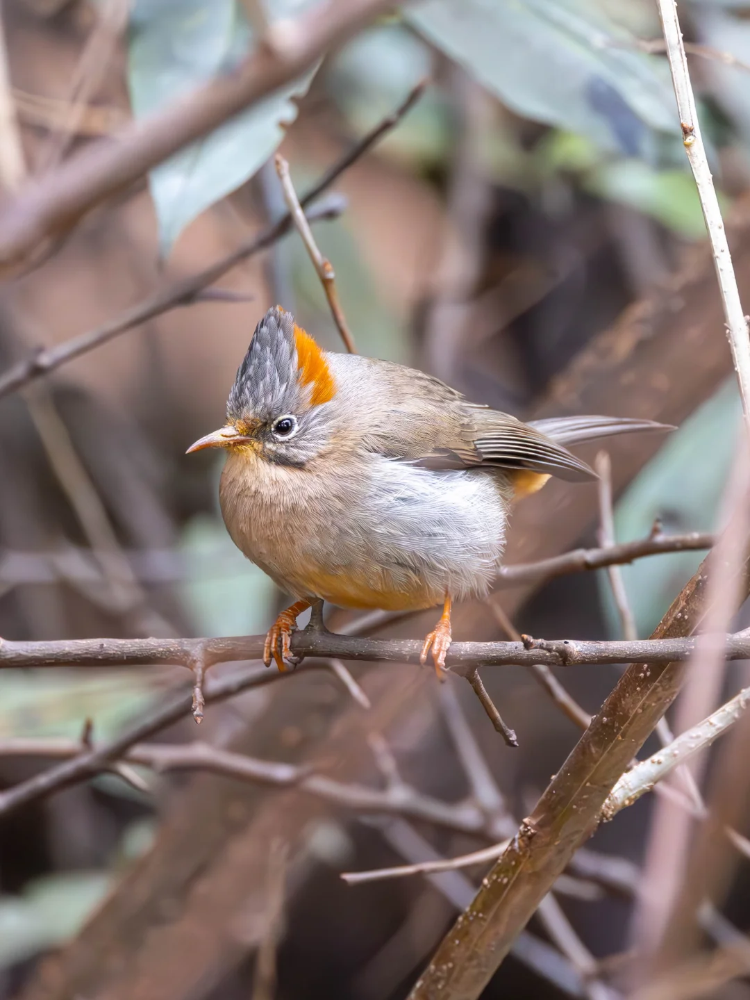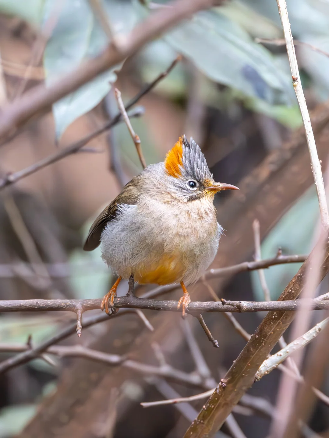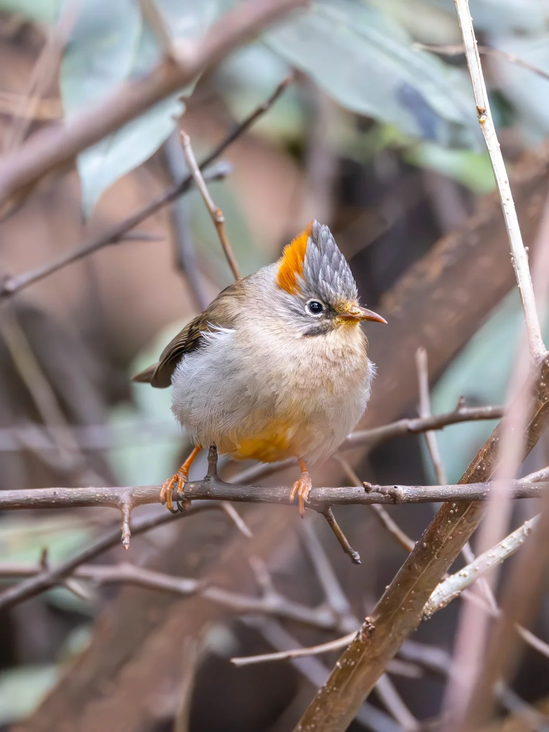 原创拍摄于2025.02 棕臀凤鹛,Rufous-vented Yuhina,雀形目绣眼鸟科凤鹛属。 棕臀凤鹛是一种较大的凤鹛(虽然凤鹛都很小),头冠背面“挑染”了一撮耀眼的橙色,臀部也染了棕色,特征显著。 这种可爱又愤怒的小鸟分布在云南及喜马拉雅山脉,当时我正在泸沽湖环湖自驾,在情人滩偶遇一波鸟浪,于是看到了这群可爱的棕臀凤鹛。