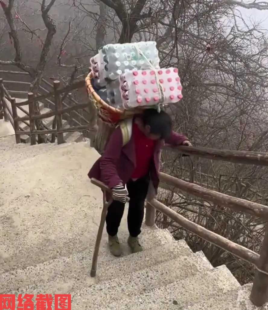 河南老君山有游客爬山看到挑山工。 此刻这名中年大姐的挑山工,在她的背后上还背着三十六箱方便面朝山顶方向登去,在她的神情里看到非常辛苦的痕迹,这是挣得汗水钱。 可有些众人不理解,如今科技发达为什么不可以利用无人机搬运了,还要耗费人力这不是多此一举吗,可这位背货的中年大姐给出一句话,这是景区为她们这些人留下的饭碗,此话一出,众人明白为什么现在还会看到挑山工的身影,因为在她们的背后也是有家庭的生活。 这份工作虽非常辛苦但也是个机会,可以为一些人提供养家的机会,不是不可以用科技的力量,但比起用人留下生存机会的话,这样的意义显得更为人性化一些。 可见科技如何发展,主要还是为人提供方便,同时也要给人留下生存的机会,景区的考虑周全,这里有人还是需要生活需要工作的机会,科技带来是便利而不是阻碍,我们需要利用科技带来便捷但还需要理解有人生活的方式,毕竟我们还需要不同的生活,需要不同的方式生存。 生活需要机会,而不是所谓的感悟。
