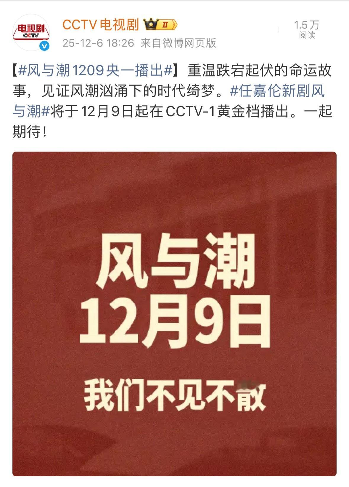任嘉伦风与潮1209央一播出啦!不见不散