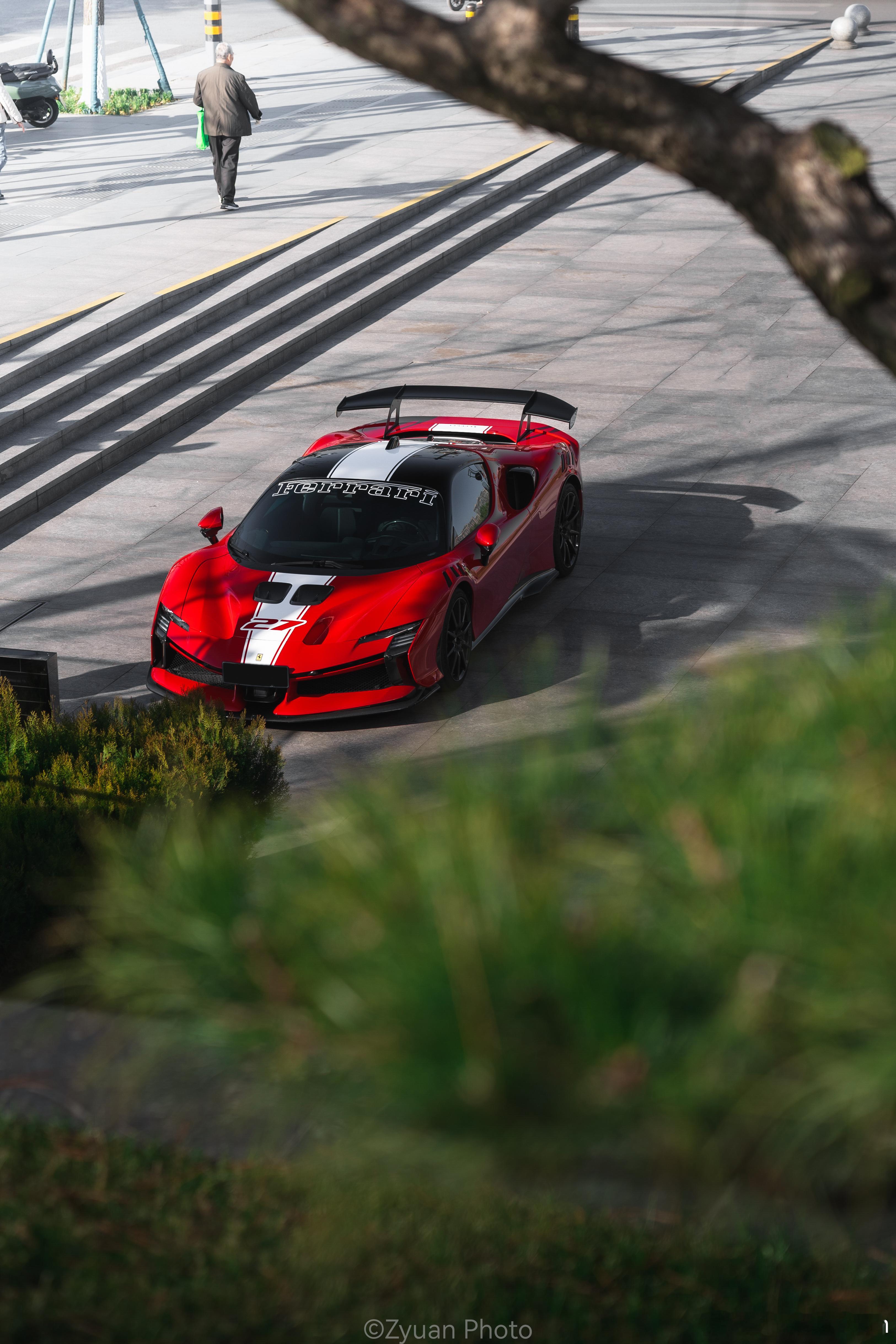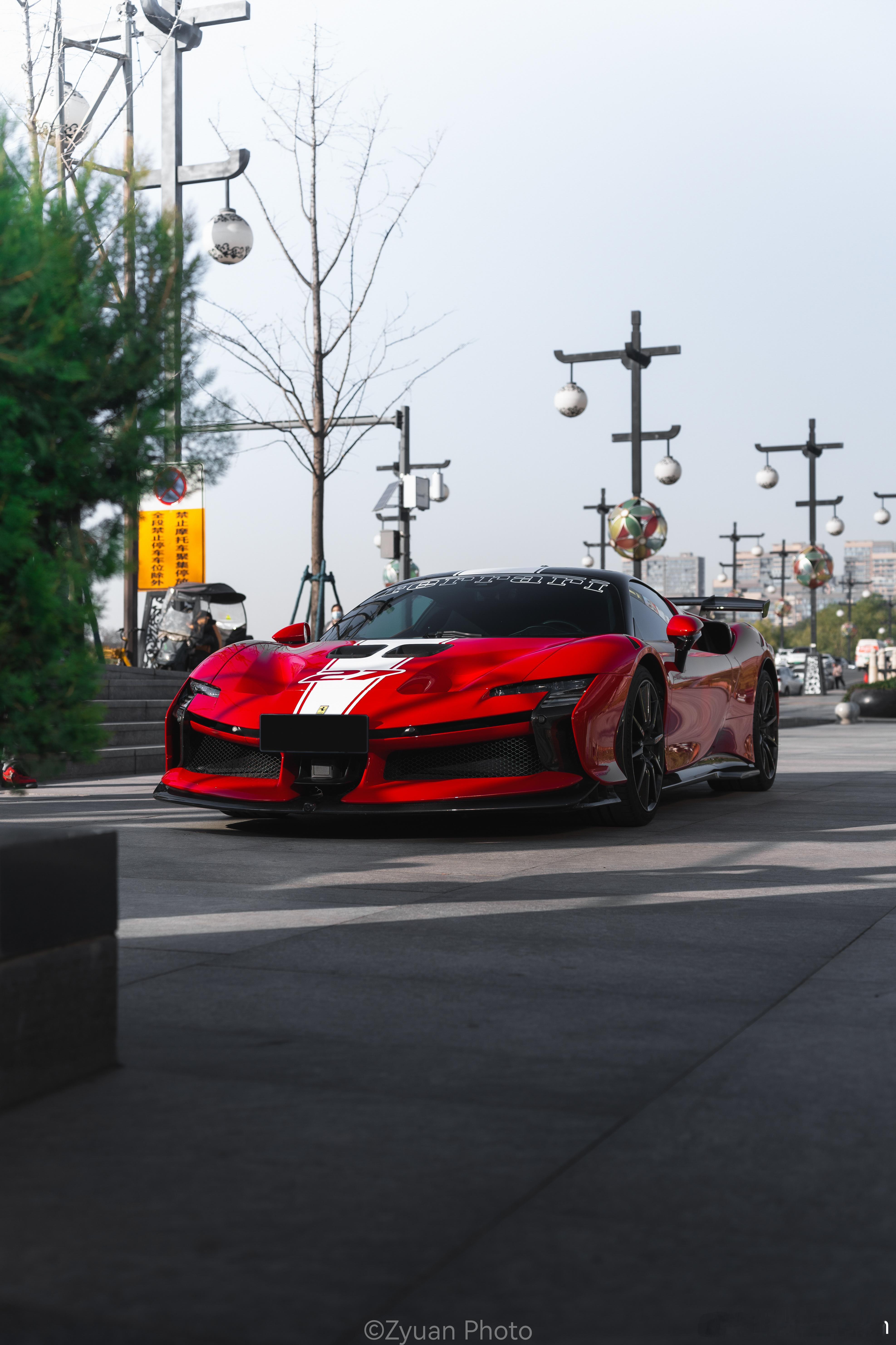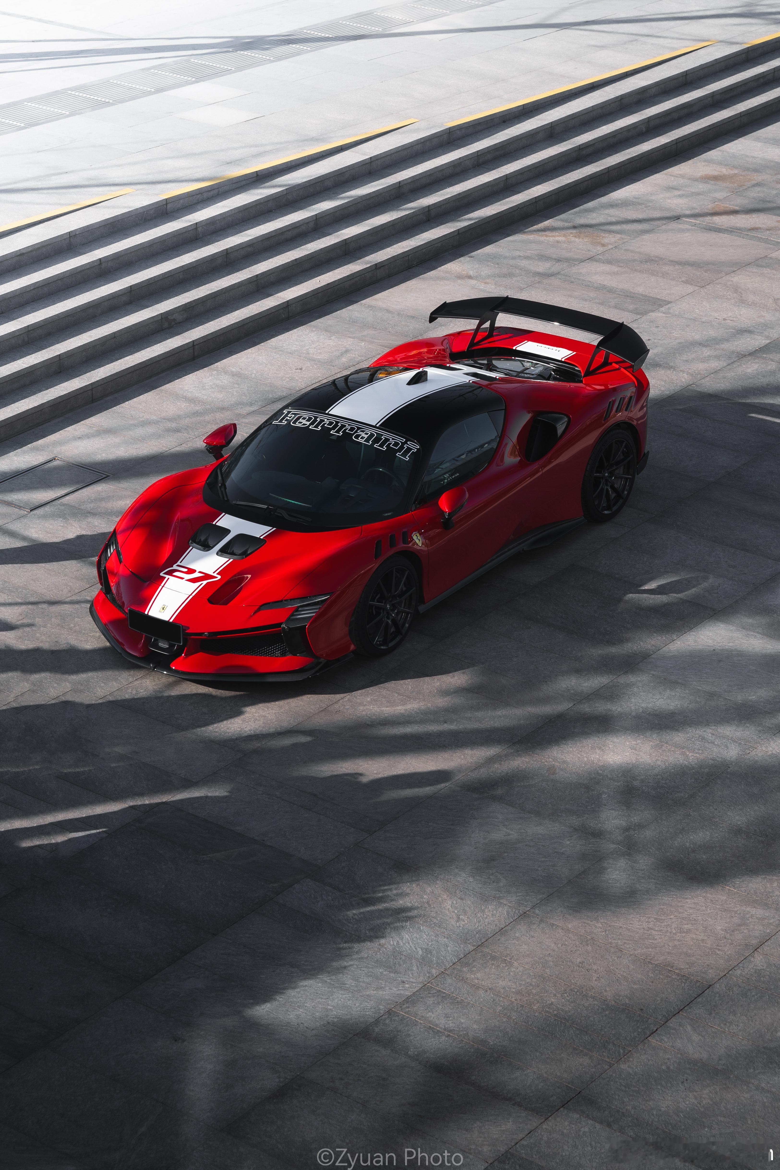 📸 西安首台SF90 XX Stradale 终于可以到达室外拍摄了 在旁边的店内就是前阵子到达参展的ValhallaRosso Corsa车漆面带上白色拉花,全身空气动力学套件与碳纤维材料加持,内饰深沉色调布满Alcantara,这样的姿态放到广场中央,冲击感还是很强的,比普通SF90更为硬核且凶猛