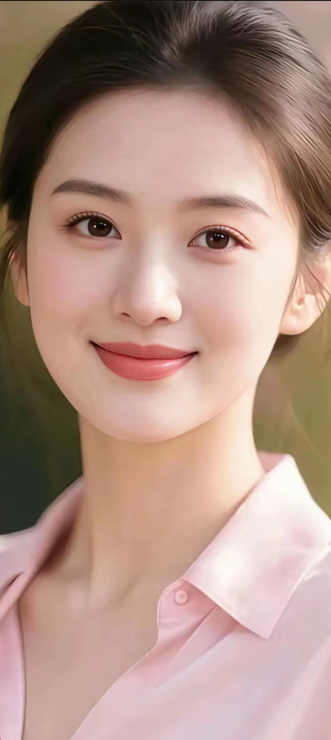 温柔甜美的微笑,粉色衬衫的清新搭配,元气满满的一天!🌸💕