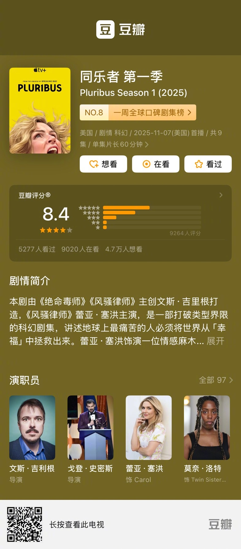 剧荒🐎住!美国电影学会(AFI)评选出2025年度最佳剧集Top10:《混沌少年时》《安多》《雷殛元首》《头号外交官》《敏感之人》《匹兹堡医护前线》《同乐者》《人生切割术》《片厂风云》《特别小组》