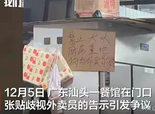 汕头一餐馆张贴歧视外卖员告示引争议 涉事店员被行拘道歉 餐馆已停业 2025年12月5日,广东汕头澄海区一家餐馆因在门口张贴歧视外卖员的相关告示,迅速在网络上引发广泛争议,不少网友对该餐馆的做法提出强烈批评,认为其行为既不尊重外卖从业者,也违背了公序良俗。 12月6日,为了解事件后续情况,记者曾多次尝试拨打涉事餐馆的对外联系电话,但电话始终提示处于关机状态,无法与餐馆相关负责人取得沟通,餐馆方面也未就此事主动对外发布任何说明。 记者从当地市场监督管理部门处获悉,在歧视告示引发争议后,市监部门已第一时间介入对该事件的调查处理。与此同时,据澄海电视台发布的权威消息,涉事张贴告示的店员已被当地警方依法处以行政拘留处罚,涉事餐馆目前已全面暂停营业。此外,涉事店员本人以及餐馆管理方,均已就此次不当行为向外卖从业者群体及社会公众进行了公开道歉,以弥补此次事件造成的不良社会影响。 该事件的相关处置进展也引发了公众对服务业从业者权益保障及行业文明规范的关注,不少人呼吁各类经营主体应尊重每一位劳动者,共同维护平等友善的社会氛围。 编辑‖夏雨 信息来源于新京报。