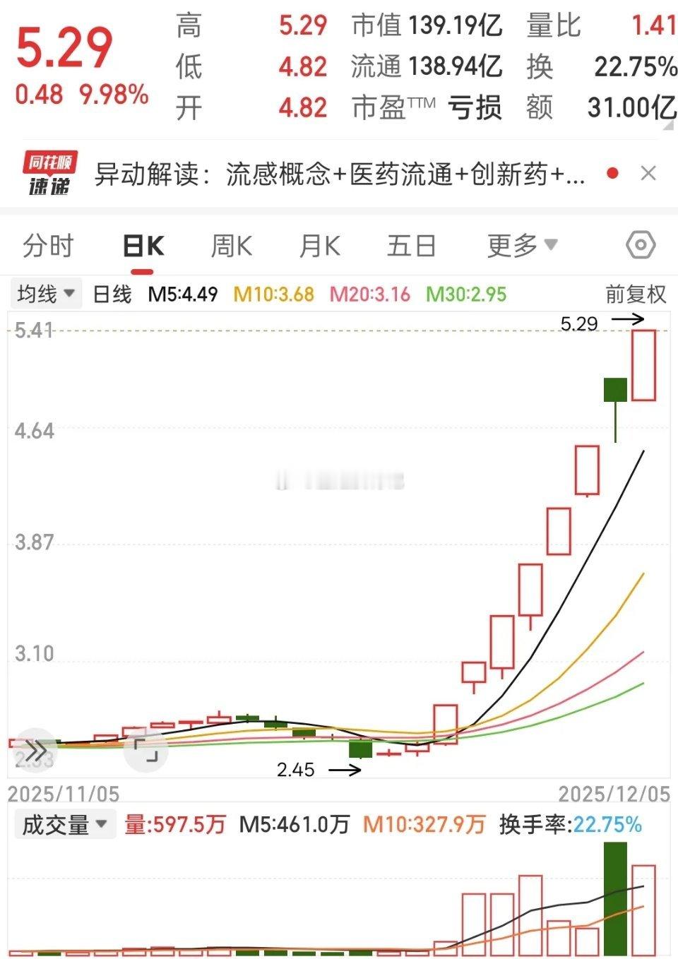 又涨停了!8天7板直接翻倍!这波行情太嗨了!核心逻辑可能还是流感季的风口,全国流感高发,公司不仅产氯酚黄敏片等感冒药,子公司还做疫苗冷链配送,刚好踩中热点;可能再加上创新药HW130注射液进II期、西地那非口崩片获批,给了市场想象空间;不过公司业绩还亏着,这波可能是纯情绪炒作还是可能真要反转呢?