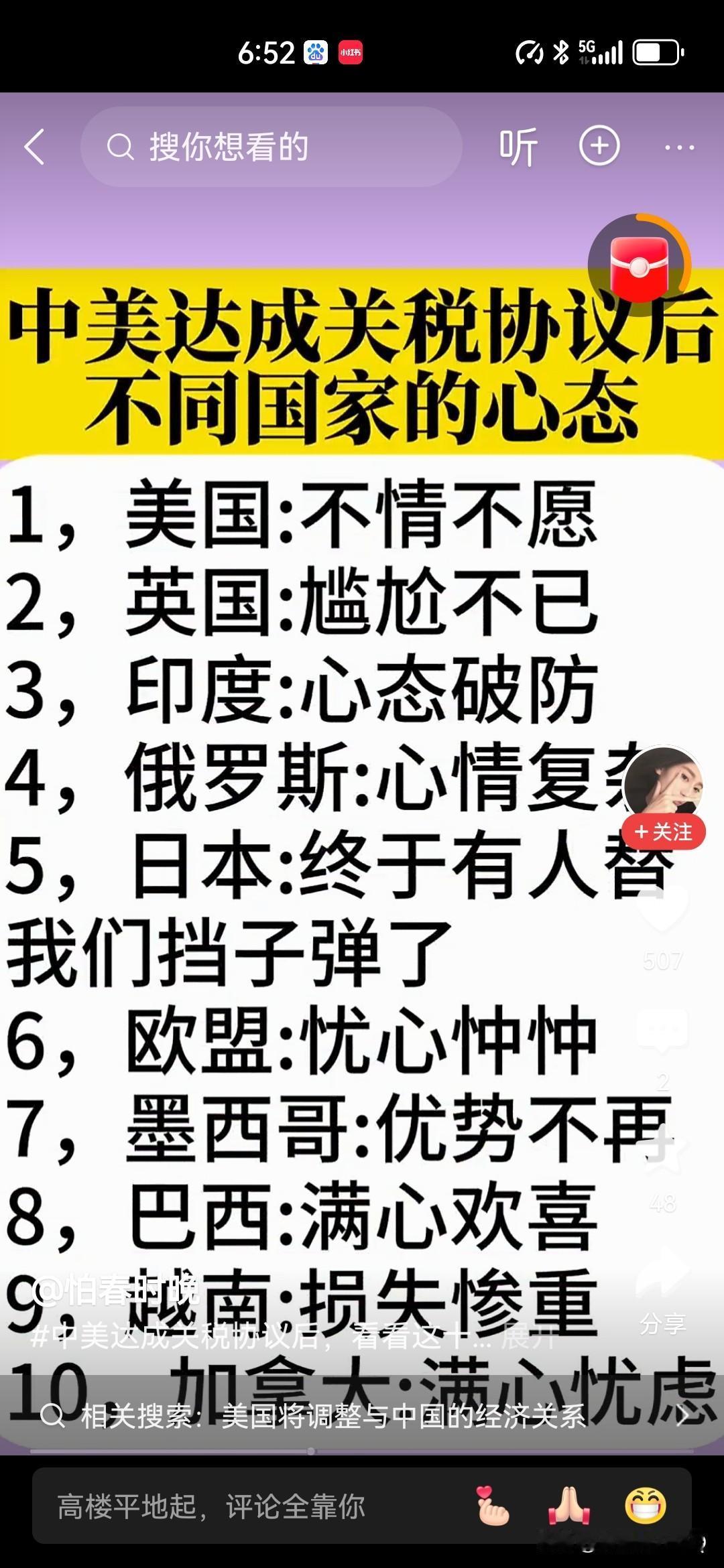 如何看待中国和美国的关系美国将调整与中国的经济关系!美国与中国关税战后,放弃独霸全球,与中国互称G2,变相为平起平坐时代!定格经济关系为互相依赖的互惠平等关系,这是其他国家所没有的,招来其他国家心里不平衡,尤其是印度,越南的失落,但国家之间的利益最大化,没有实力只能上桌,所以发展的关键是定位自己!