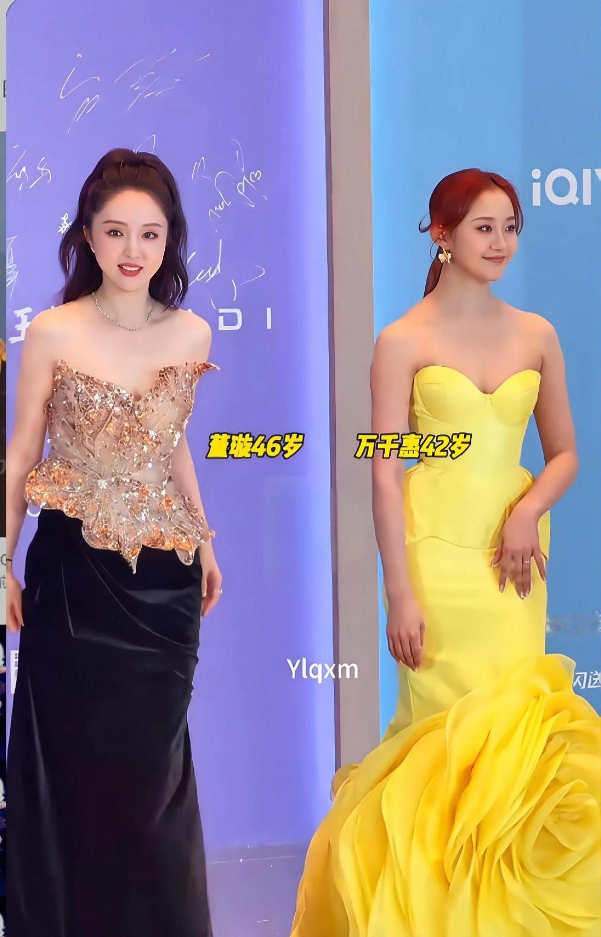 44岁的董璇和32岁的网红万千惠同台,这爱奇艺尖叫之夜的红毯现场简直就是大型“公