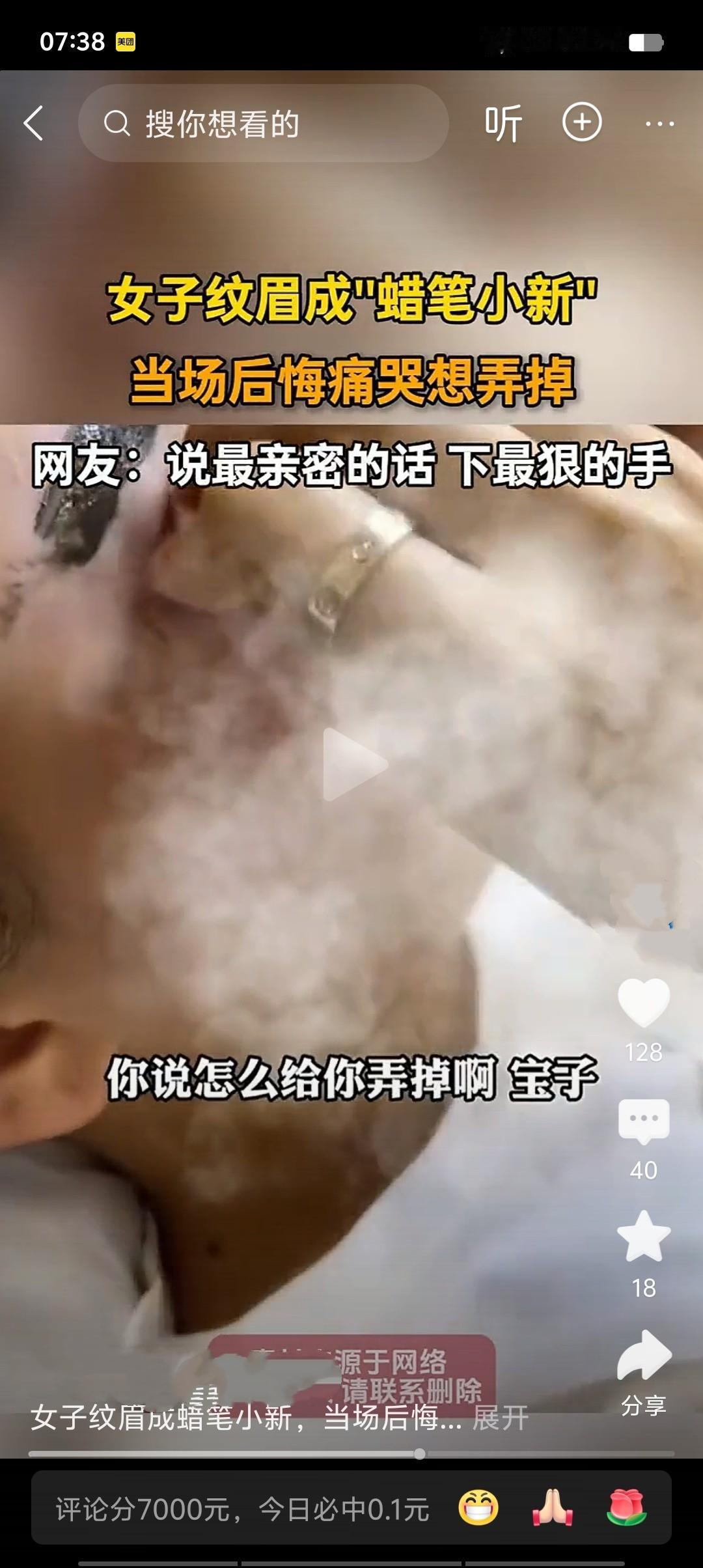 女子满心期待去纹眉,本想拥有精致眉形,结果纹眉师手艺“跑偏”,眉毛又粗又黑,活脱脱成了蜡笔小新同款。看着镜子里怪异的模样,她当场崩溃,后悔痛哭。这教训提醒大家,纹眉前务必考察好技师水平,别让变美变“毁容”。纹眉