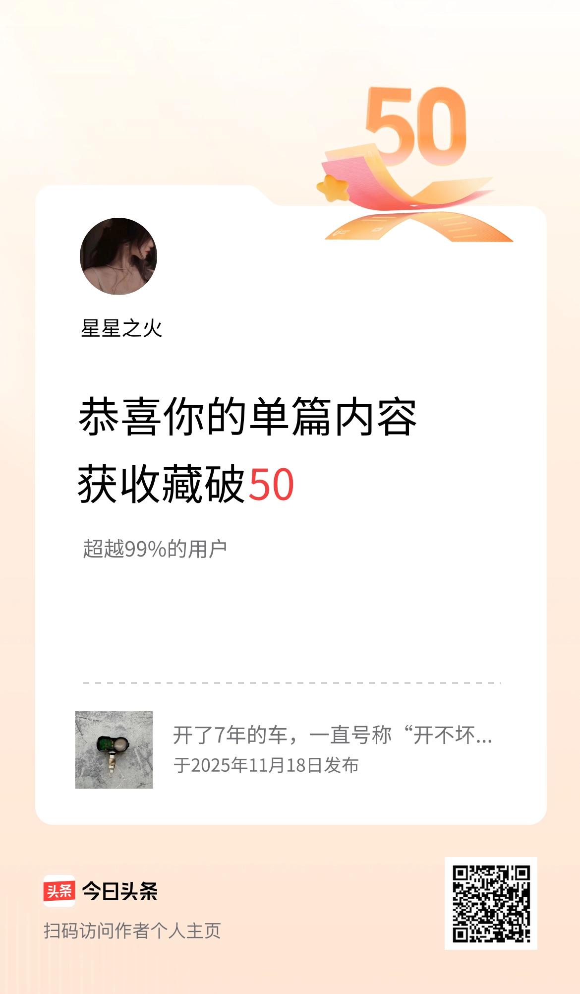 单篇内容获收藏量破50啦!