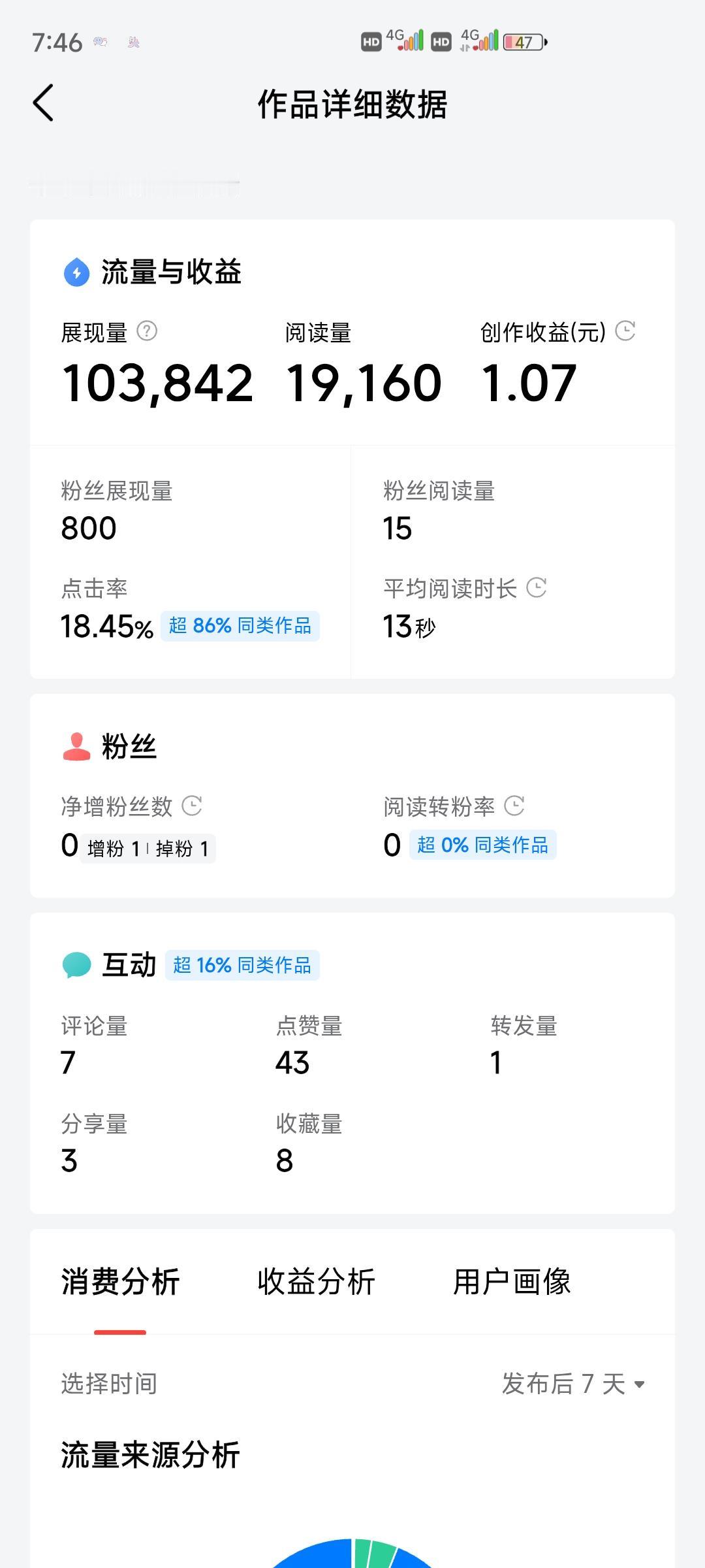 发现现在的头条评论精灵,只要评论了的作品,慢慢的都会火一点。 这个作品一开始发的时候,展现量非常低,阅读量更是寥寥无几,头条精灵评论后,慢慢的展现量有了10万,阅读量有了1.9万。 但是钱确是少的可怜,只有1.07块。