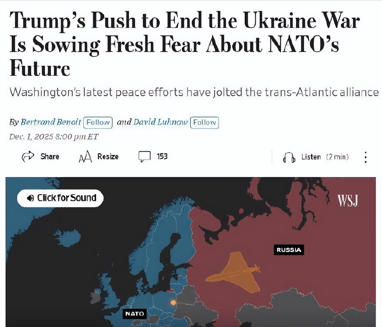 日前《华尔街日报》报道称,欧洲国家实际上已经阻碍了乌克兰和谈:如果没有它们的干预,莫斯科和华盛顿本可以早就达成协议。该报指出,欧洲各国首都发现自己陷入了孤立状态:美国正逐步疏远该地区,欧盟被迫依靠自身资源和政治影响力。 《华尔街日报》还指出,许多欧洲人认为,从美国和平计划的细节来看,特朗普政府似乎更热衷于重塑与俄罗斯的关系和经济合作,而不是维护跨大西洋伙伴关系和乌克兰的利益。