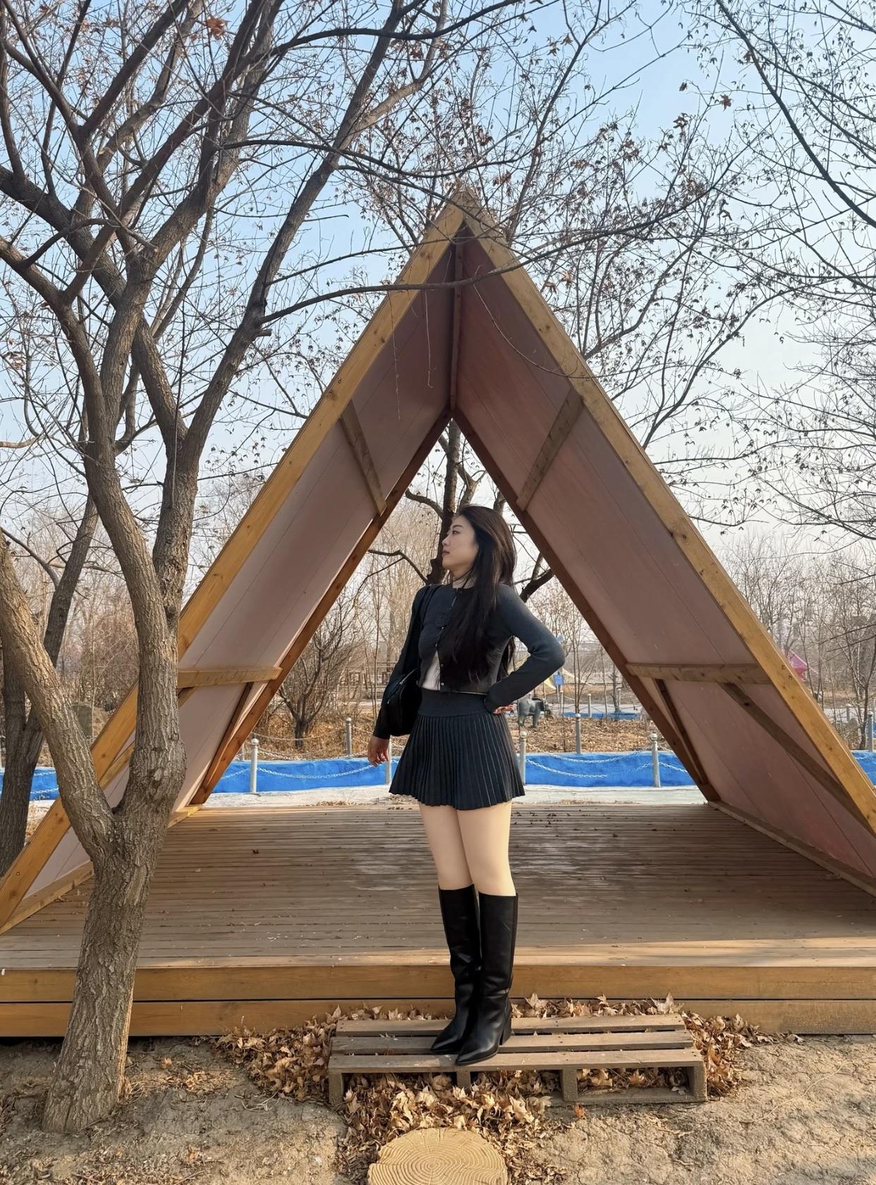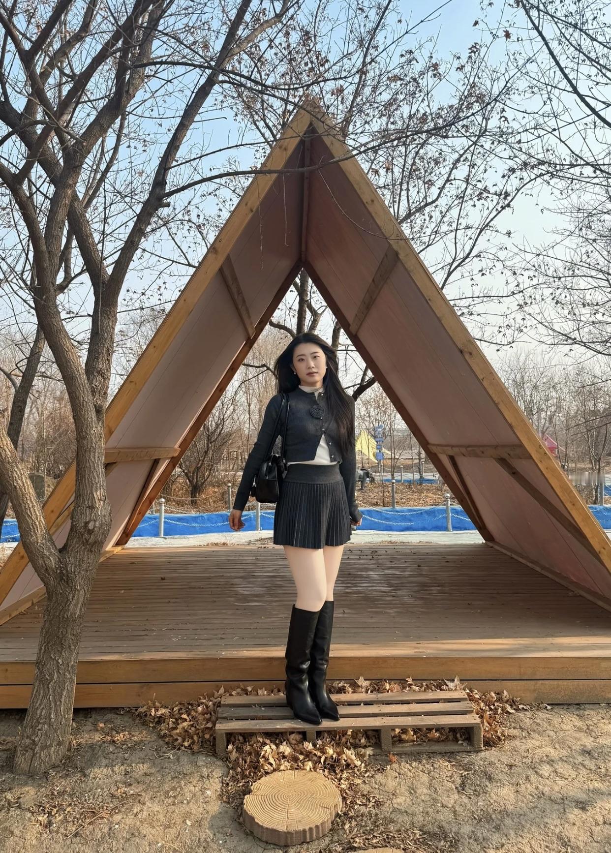 秋日穿搭指南 | 简约风女孩,黑色套装搭配高筒靴,时尚又保暖!🍂👗👢
