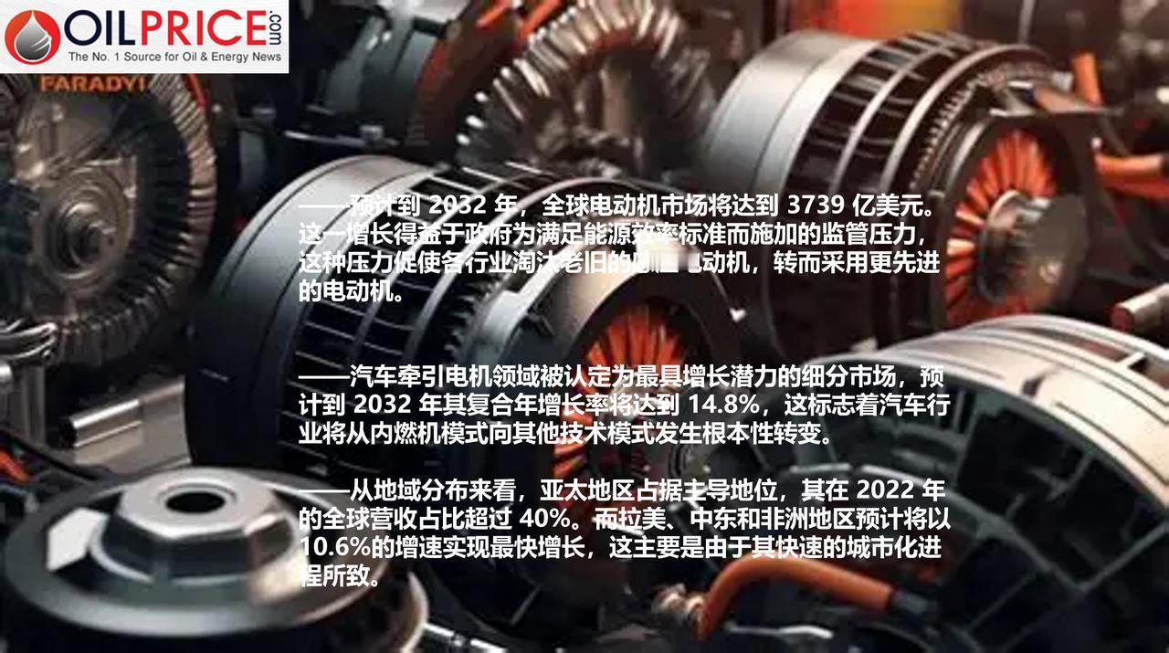 到 2032 年,电动机市场规模预计将增长两倍 驱动当今世界的各类机械装置,从工业装配线到数据中心的冷却系统,正经历着一场规模庞大且耗资巨大的革新改造。 根据Allied市场研究公司的一项新分析报告,全球电动机市场预计到 2032 年将达到 3739 亿美元,较 2020 年的 1421 亿美元估值增长近两倍。 数据显示,从 2023 年到 2032 年,复合年增长率(CAGR)为 9.5%。但除了这些增长率之外,该报告还概述了全球经济能源消费方式的结构性变化。 随着各国和各企业承诺追求“高效”和“去碳化”,实现这些承诺的责任便落在了硬件设备上。其结果是,老旧基础设施被迫退役,而对高品质、高效率电机系统的需求则大幅增加。 ——效率之源 数十年来,工业电机一直是全球电网中的固定组成部分。而如今,它却成为了监管压力的焦点所在。 国际能源署(IEA)估计,电动机系统约占全球电力消耗的 53%。随着欧盟和北美各国政府逐步提高最低能效标准(MEPS),工业领域正被迫进行升级。 该报告强调指出,“经济增长的主要驱动因素”不仅包括消费需求,还包含对能源效率的系统性推动。目前市场正处于一个更新换代的周期中,老化的感应式电机正被先进的系统所取代,这些新系统能够满足净零排放的目标要求。 这是一个成本不低的转变过程。分析报告指出,这些先进电机的“高昂初始成本”仍是市场发展的主要障碍。效率的提高会在数十年内降低运营成本,但需要大量的前期资金投入——这种动态使得大型工业巨头比小型企业更具优势。 ——重新构建汽车供应链 报告中所指出的最具增长潜力的领域是汽车牵引电机这一细分市场。预计到 2032 年,这一领域将以 14.8%的复合年增长率持续增长,它代表着内燃机经济的物理性终结。 随着汽车制造商纷纷转向电动汽车,对牵引电机的需求正在重塑铜、稀土磁体以及钢片的供应链格局。 这种转变不仅仅是消费趋势的体现,更是工业界“通过减少碳排放来保护环境”的必然要求,据该报告所述。牵引电机正逐渐成为新的发动机核心部件,从而在汽车工业与其传统的化石燃料依赖性之间形成了一道分界线。 ——电网与工厂 该报告将市场细分为两种截然不同的技术架构,每种架构在现代国家中承担着不同的职能。 交流电机:这些仍是电网中的主力设备。2020 年,它们占据了市场三分之四的份额,在重工业领域占据主导地位。它们被应用于变电站和发电站——这些关键基础设施直接连接到母线,以稳定整个电力网络中的功率因数。 直流电机:尽管体积较小,但这一领域预计将以每年 9.9%的速度增长。这些电机是经济运行的精密设备,采用机械换向方式,对于机器人和医疗设备中的高速应用至关重要。随着医疗保健和自动化领域的不断扩大,对这些专用电机的依赖程度也在加深。 ——生产领域的地缘政治 这次经济繁荣的地理分布情况揭示了全球工业产能的实际分布位置。 2022 年,亚太地区在市场中占据主导地位,其营收占全球总营收的 40%以上。该地区的控制力主要依靠中国和印度庞大的制造业,以及依赖于电动泵、压缩机和风扇的农业和制药行业。 然而,增长速度最快的情况出现在其他地区。拉美、中东和非洲地区(LAMEA)预计将以 10.6%的复合年增长率增长。巴西和阿根廷等国家的快速城市化进程推动了对消费电器和家用电子产品的需求,从而增加了全球南方地区的电网负荷。 ——前景展望 电动机价值的飙升是能源转型这一大趋势的晴雨表。“万物电气化”不仅需要软件代码或政策文件,还需要数百万吨的铜和钢,这些材料会被加工成实际执行工作的机器部件。 正如数据所表明的那样,向更环保的经济模式转型成本高昂、资源消耗大且过程复杂机械。股票图表上的绿色箭头或许能反映市场情绪,但电动机的积压数量则反映了未来基础设施的实际建设进度。
