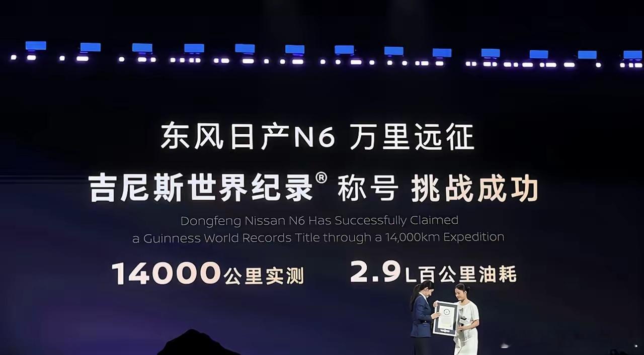 【东风日产N6 不充电油耗2.9升,那还充啥电?】东风日产N6刷新一项新的吉尼斯世界纪录,全程不充电状态下,行驶14000公里,从西藏出发,走遍中国所有省份,最终抵达新疆,历经40度温差、5200米海拔,全程9次加油,实测百公里综合油耗2.9升。不充电油耗才2.9升,那还充什么电啊,当个油车开就行!