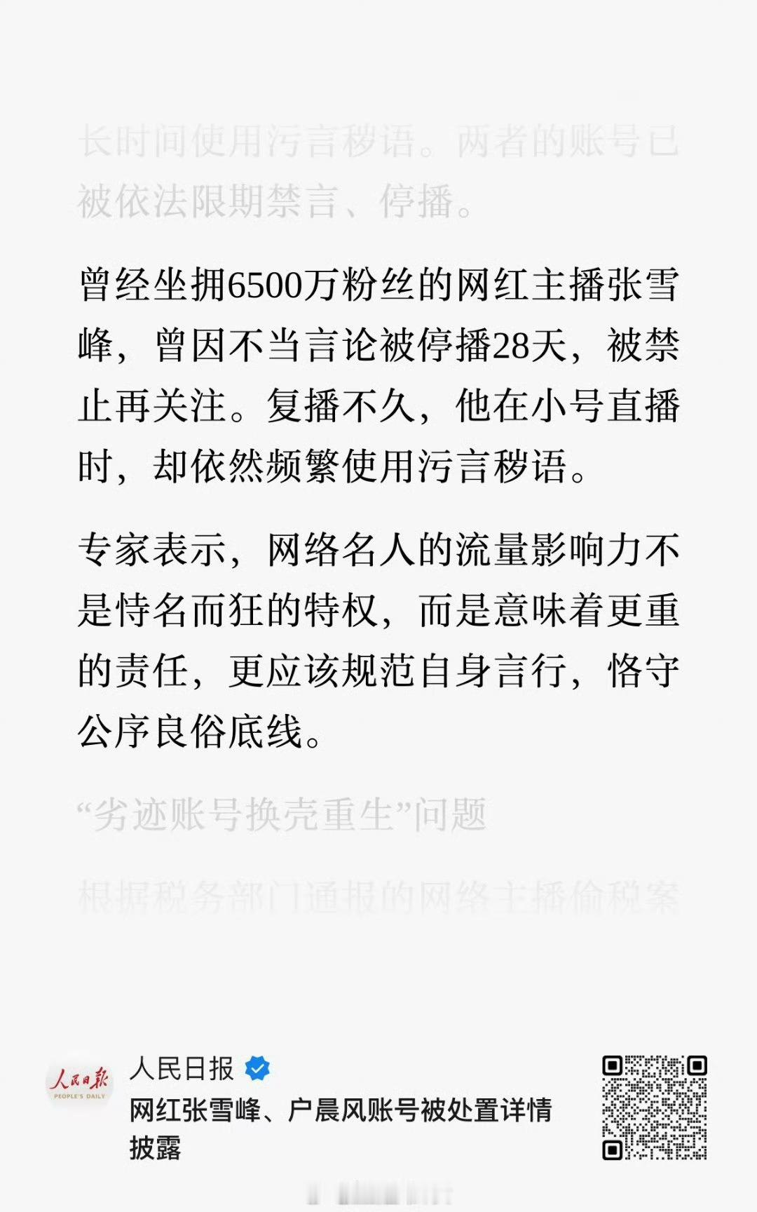 人民日报:网红张雪峰、户晨风账号被处置详情披露