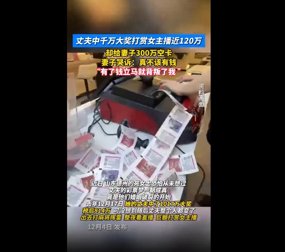 本以为中千万大奖是人生逆袭,没想到是婚姻崩塌的开始。男人揣着巨款疯狂打赏女主播,对糟糠之妻却一分不舍,只留一张空卡敷衍。都说有钱能看清人心,这1000万,终究是照出了他的自私与凉薄,离婚,是女人最清醒的选择!