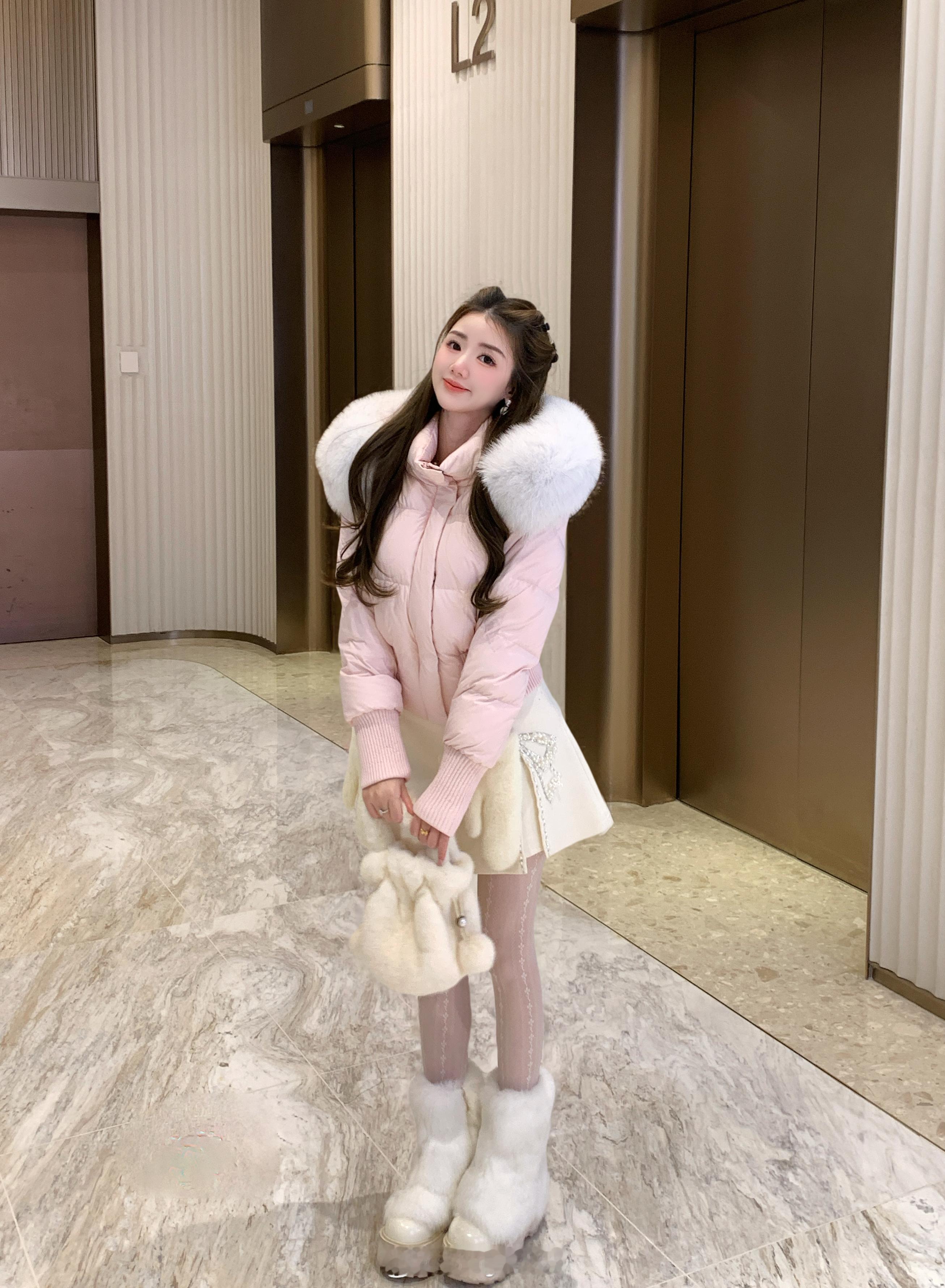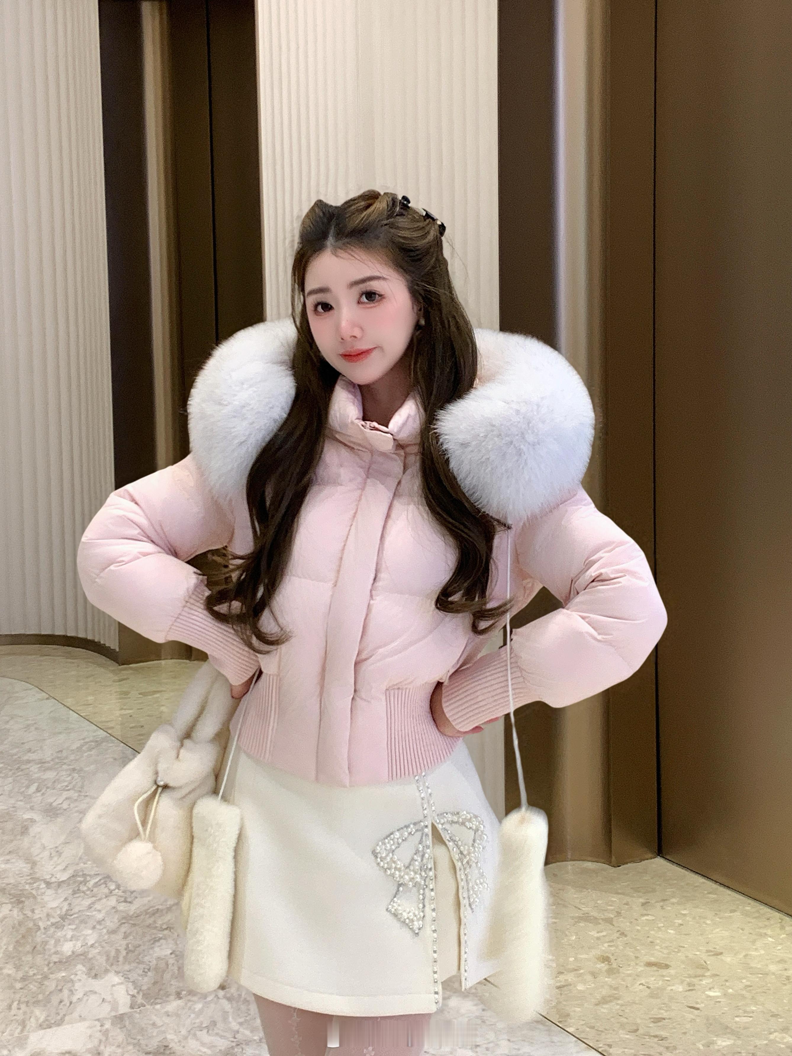 正在开这款↓草莓布丁羽绒外套 and 羽绒马甲都配有腰带哦,显腰身显腿长两种穿法