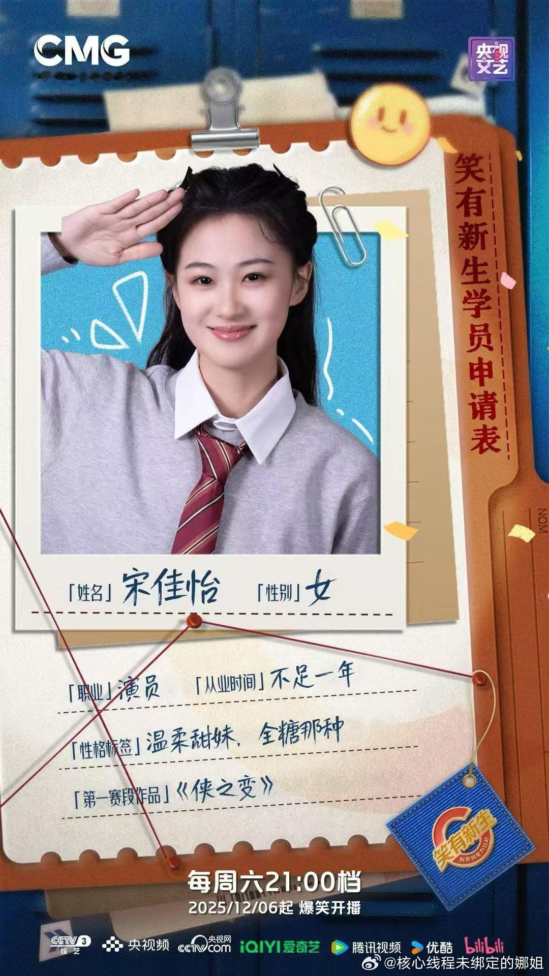 这个周六,和我一起为小宋同学打call!笑有新生 📆每周六21:00档⏰来CCTV-3为新生加油打气宋佳怡