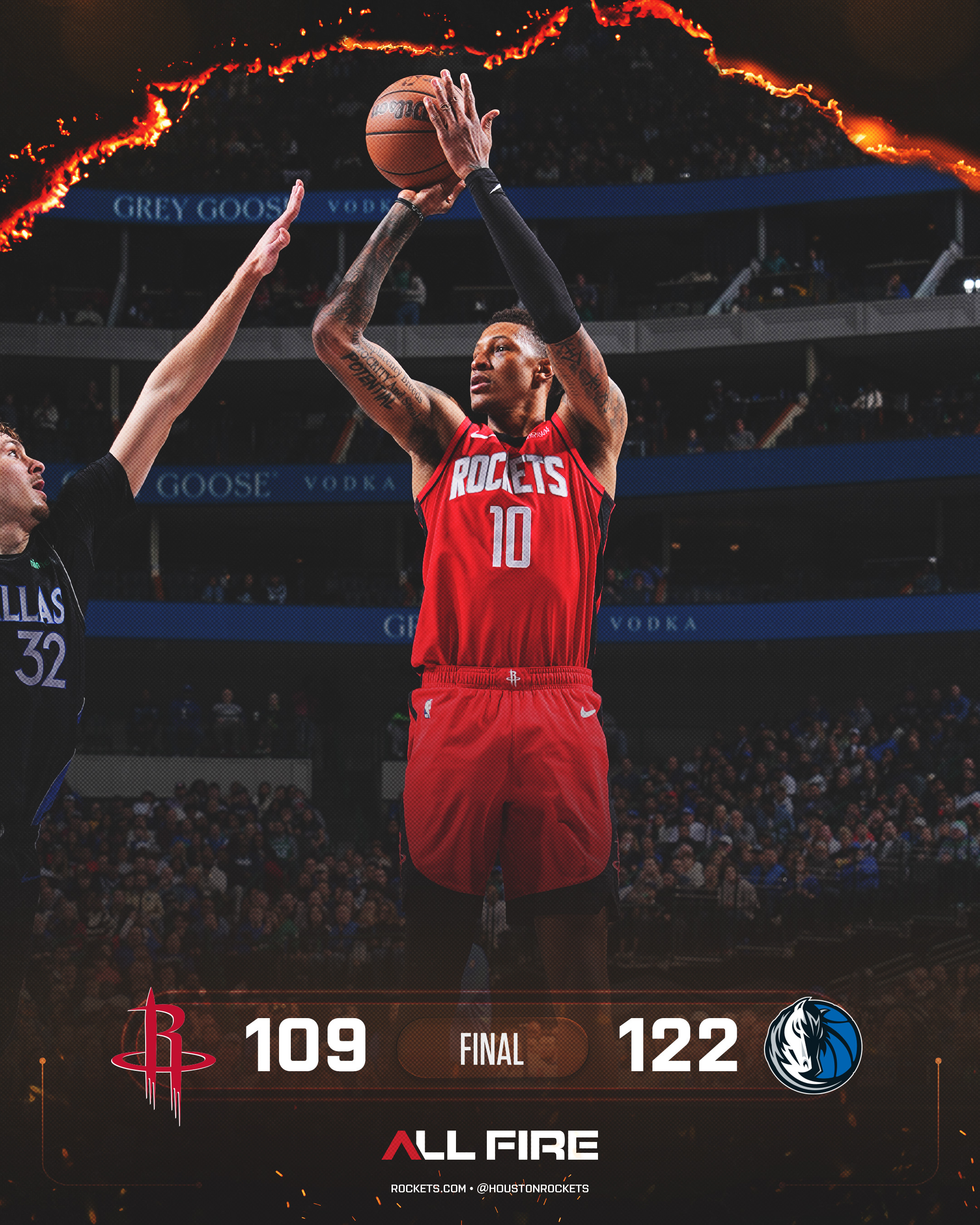 全场比赛结束!火箭109-122独行侠!杜兰特27分1板3助、史密斯22分8板3助、霍勒迪19分2板、谢泼德12分2板3助、卡佩拉8分8板1助2帽、阿门7分6板6助3断、奥科吉7分6板2断、泰特5分3板3助、格林2分1助、戴维森1板2助!火箭不敌独行侠 休斯顿火箭