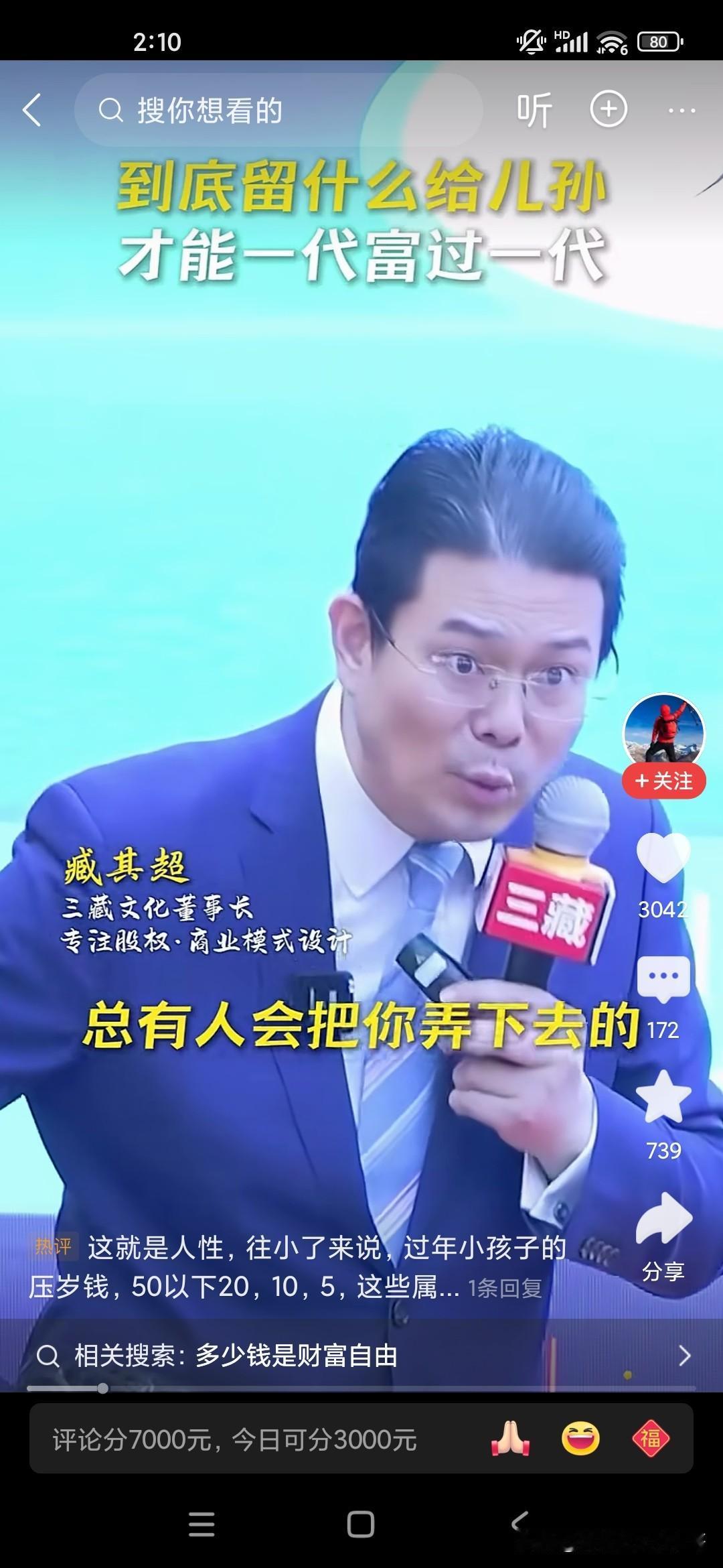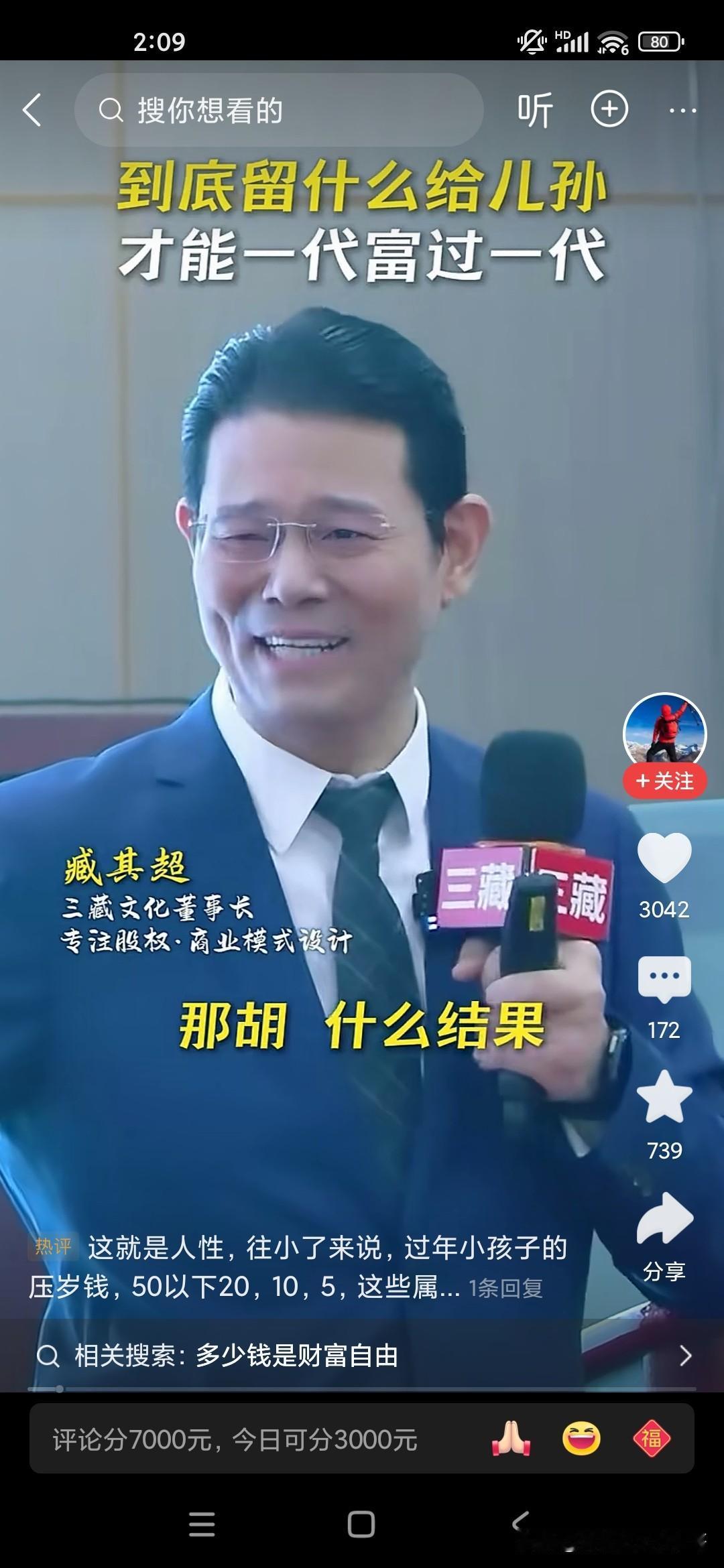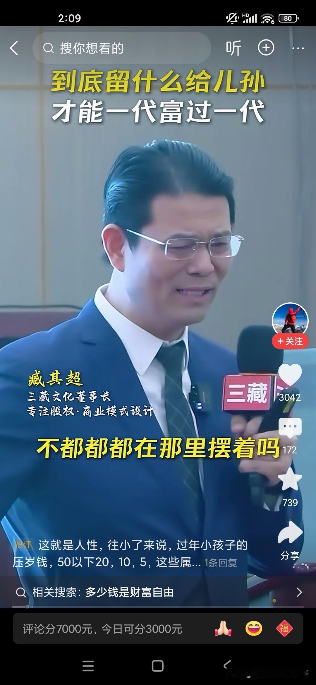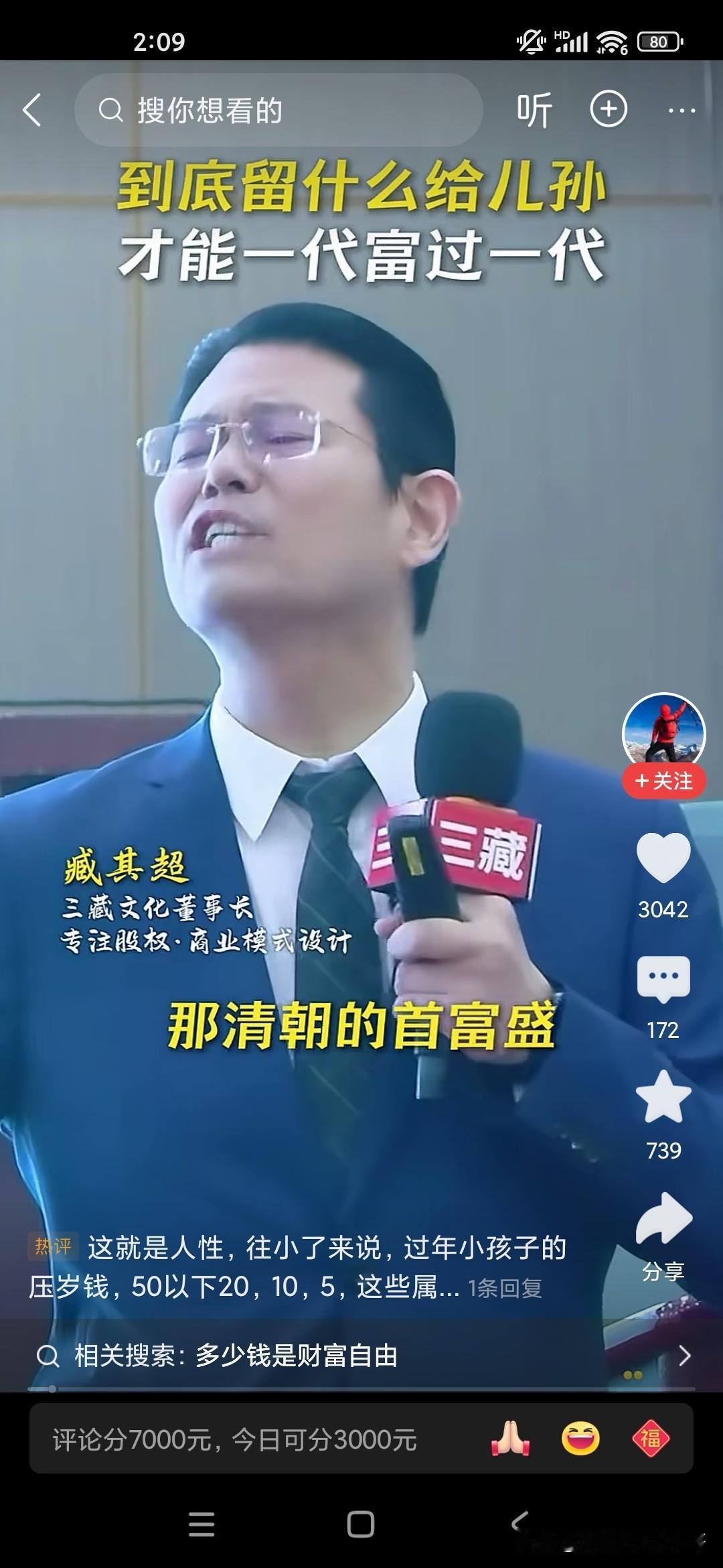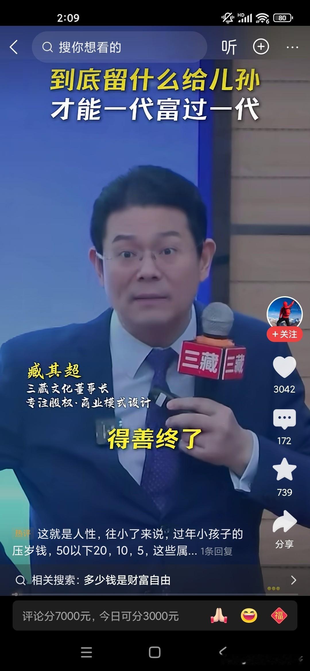 从古至今,只要你是全国首富,基本上没有什么好下场,无论是清末的胡雪原还是盛宣怀,盛宣怀的儿子甚至饿死了,还是现在的什么首富,他说什么马什么驴,然后的话也没有什么特别好的下场,所以说他都说只有你把企业搞得规模稍微小一点,小富一点是可以的,但是不要太富,太过于富有的话,可能就不是你的了,是大家伙了,只有你把它搞得小,而且有亏可能才是自己的,他其实也引发了一个思考,那就是说我们应该赚多少钱以及留给子孙后代什么样的财富才算是比较合适!