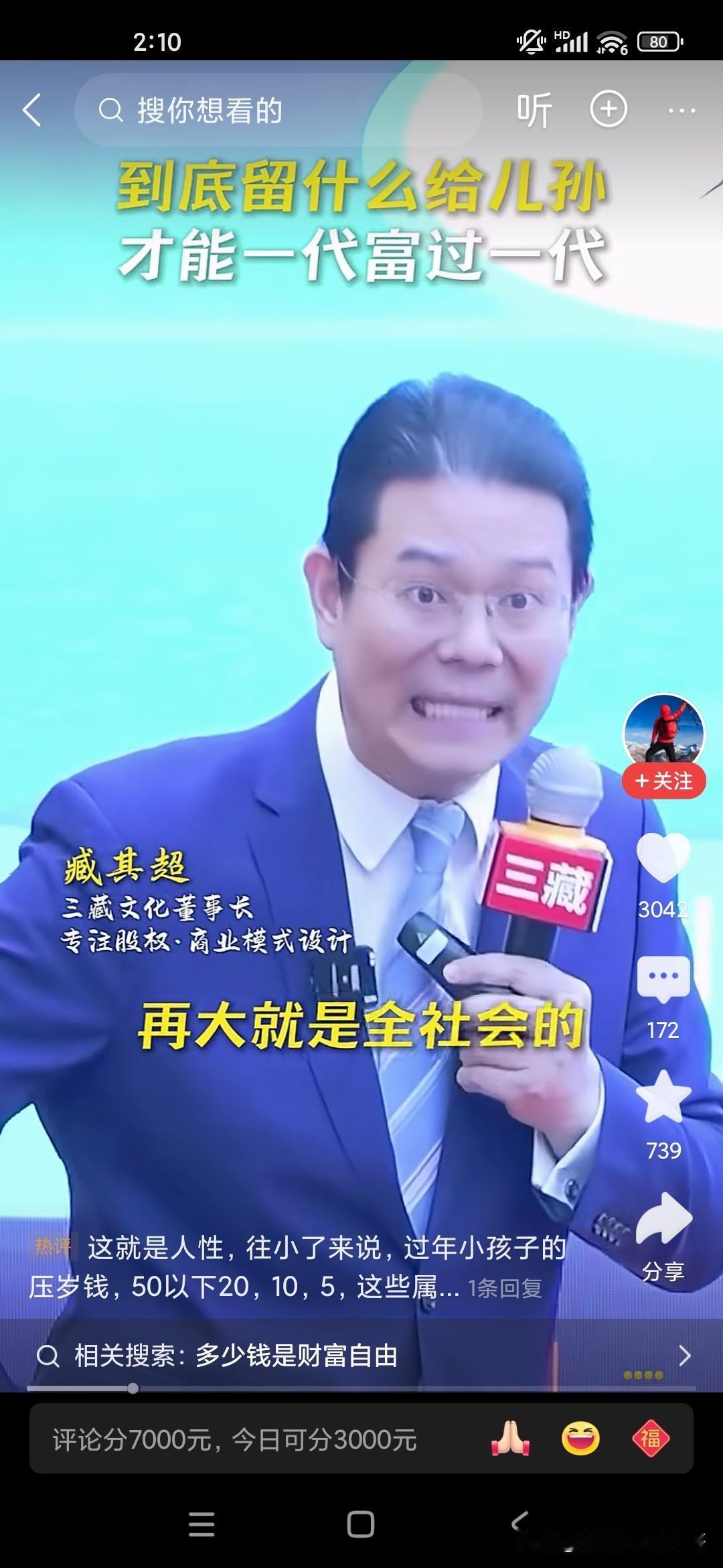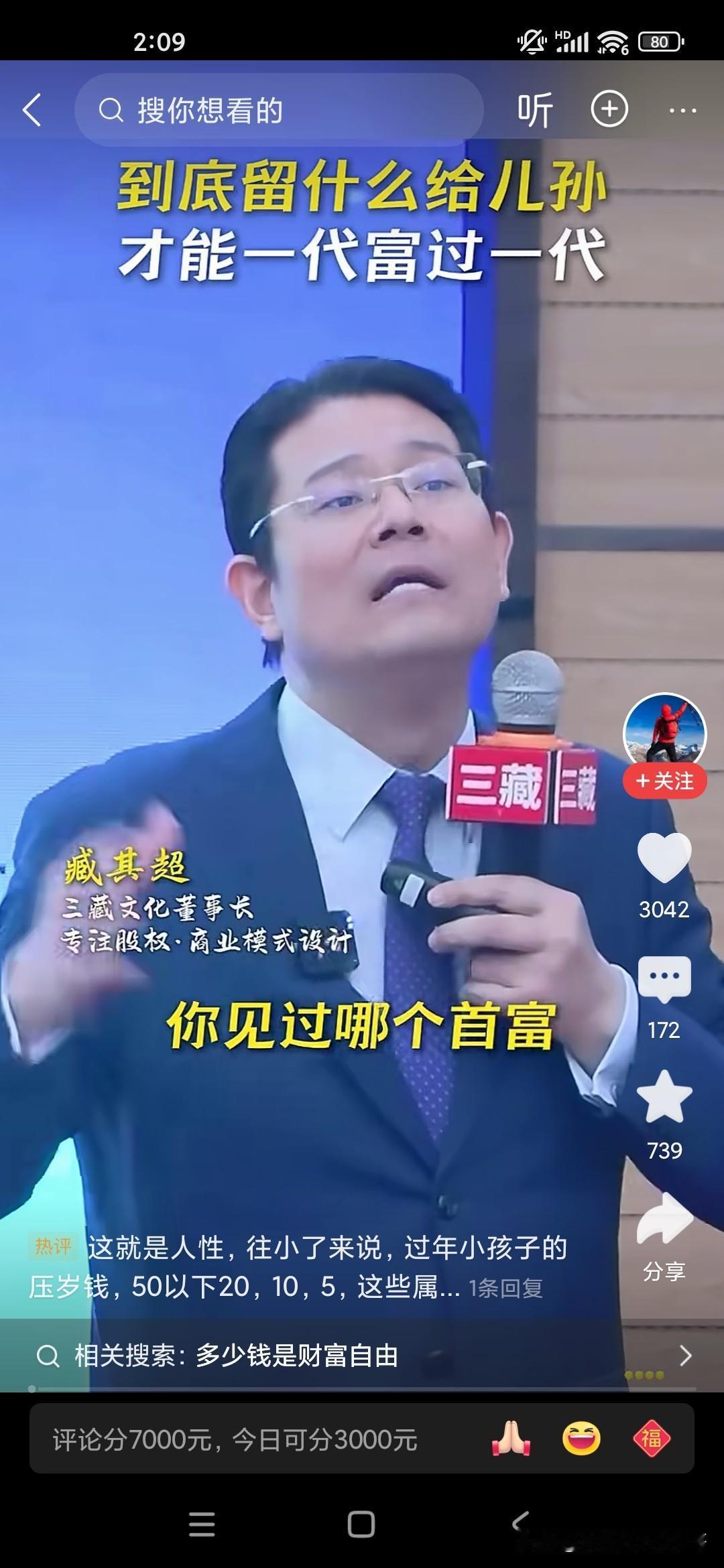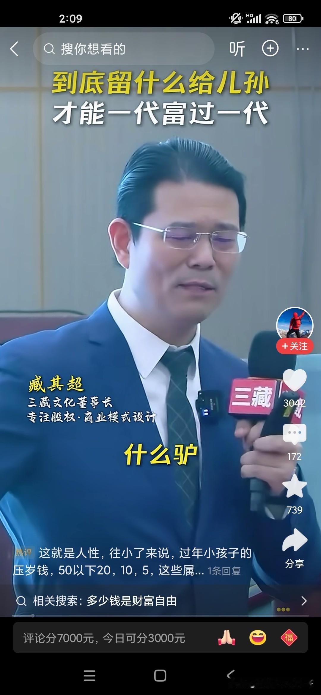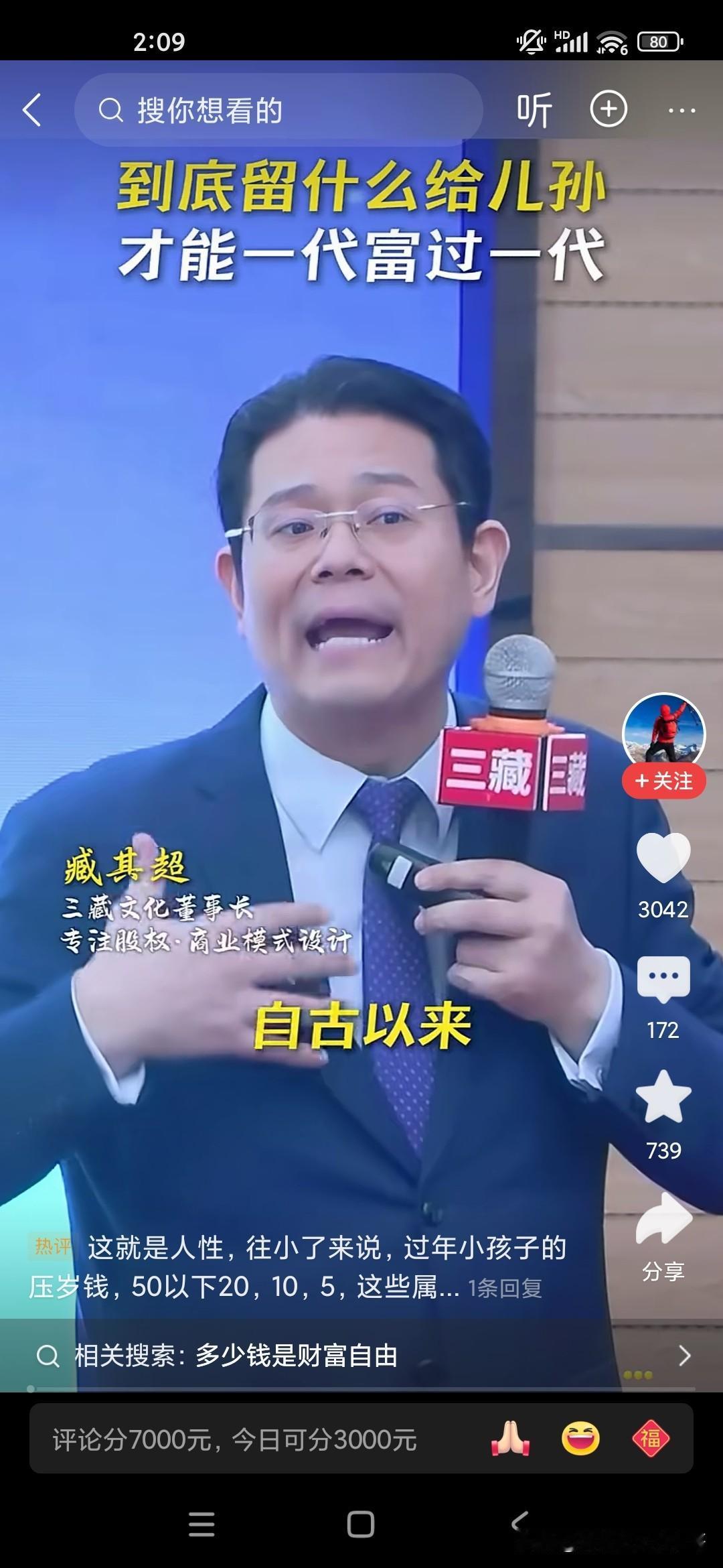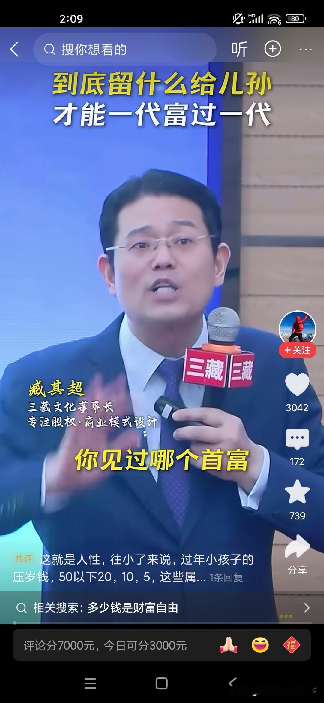 从古至今,只要你是全国首富,基本上没有什么好下场,无论是清末的胡雪原还是盛宣怀,盛宣怀的儿子甚至饿死了,还是现在的什么首富,他说什么马什么驴,然后的话也没有什么特别好的下场,所以说他都说只有你把企业搞得规模稍微小一点,小富一点是可以的,但是不要太富,太过于富有的话,可能就不是你的了,是大家伙了,只有你把它搞得小,而且有亏可能才是自己的,他其实也引发了一个思考,那就是说我们应该赚多少钱以及留给子孙后代什么样的财富才算是比较合适!